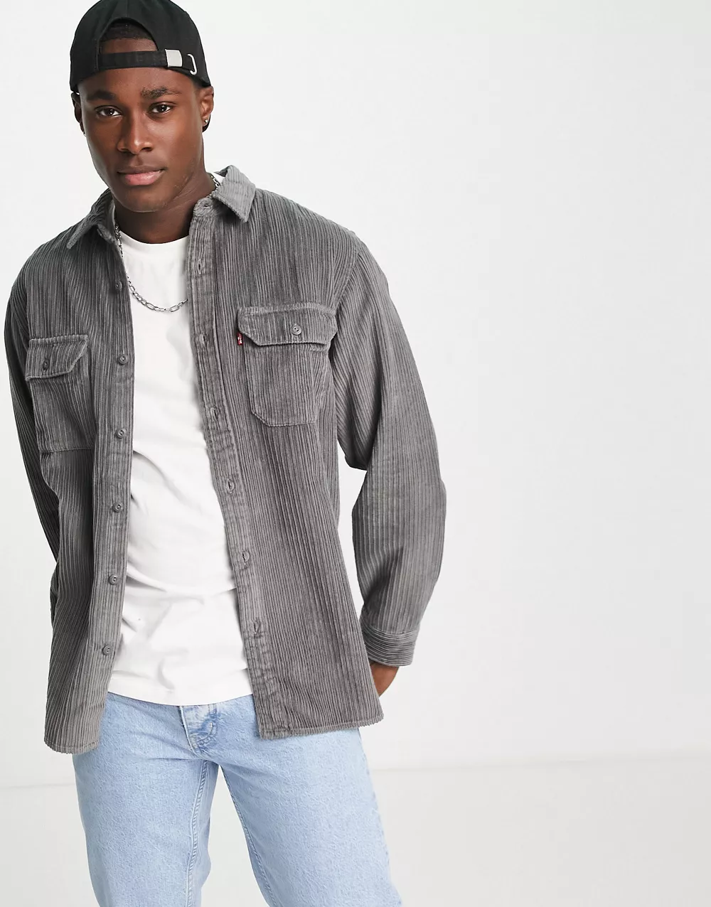 Levi's Skateboarding quick release tab belt loose fit cord trousers in anthracite night black
