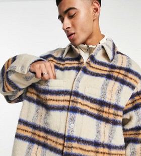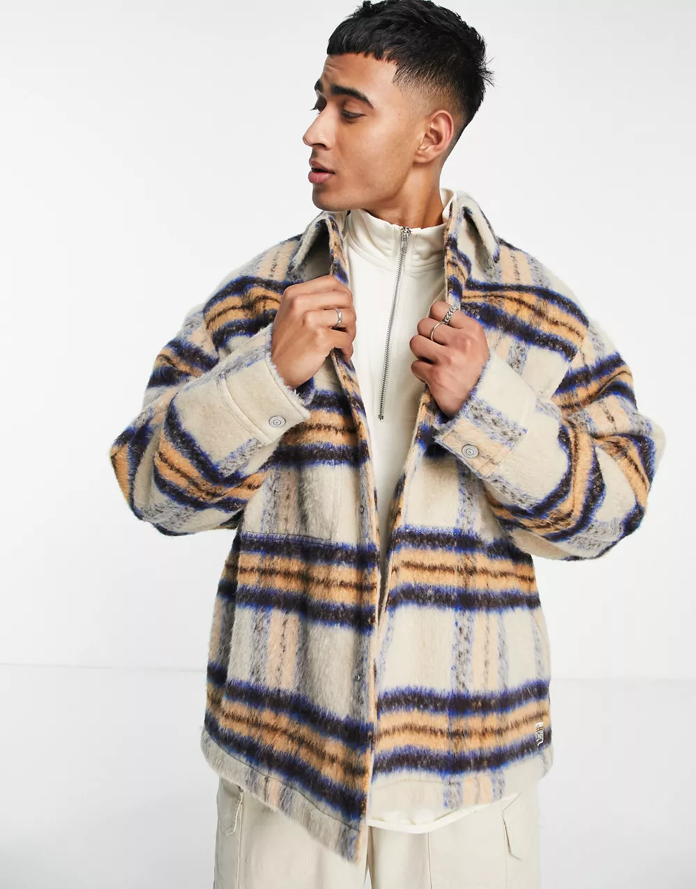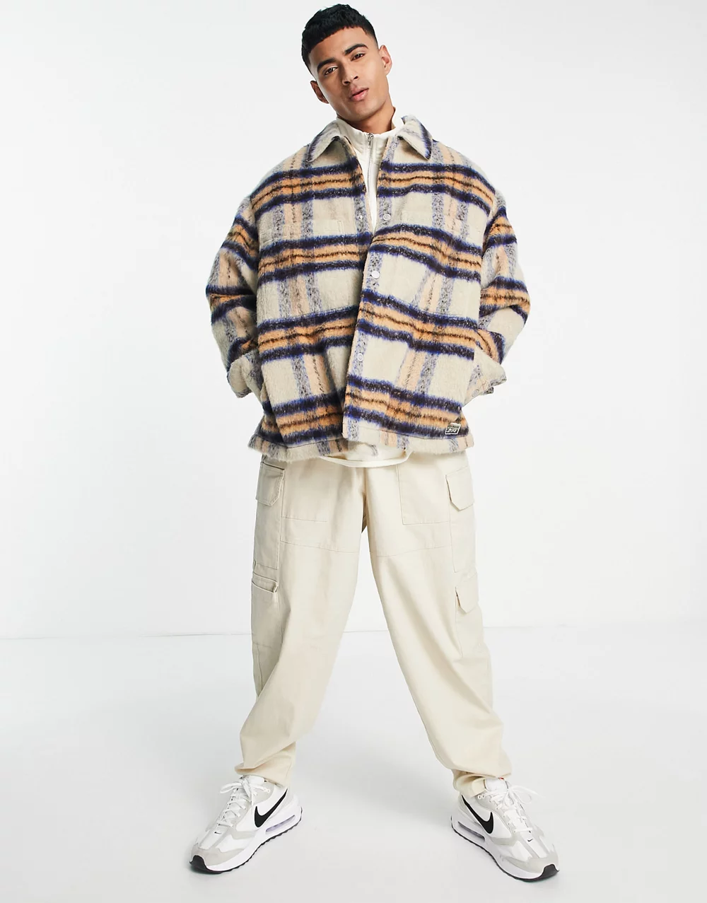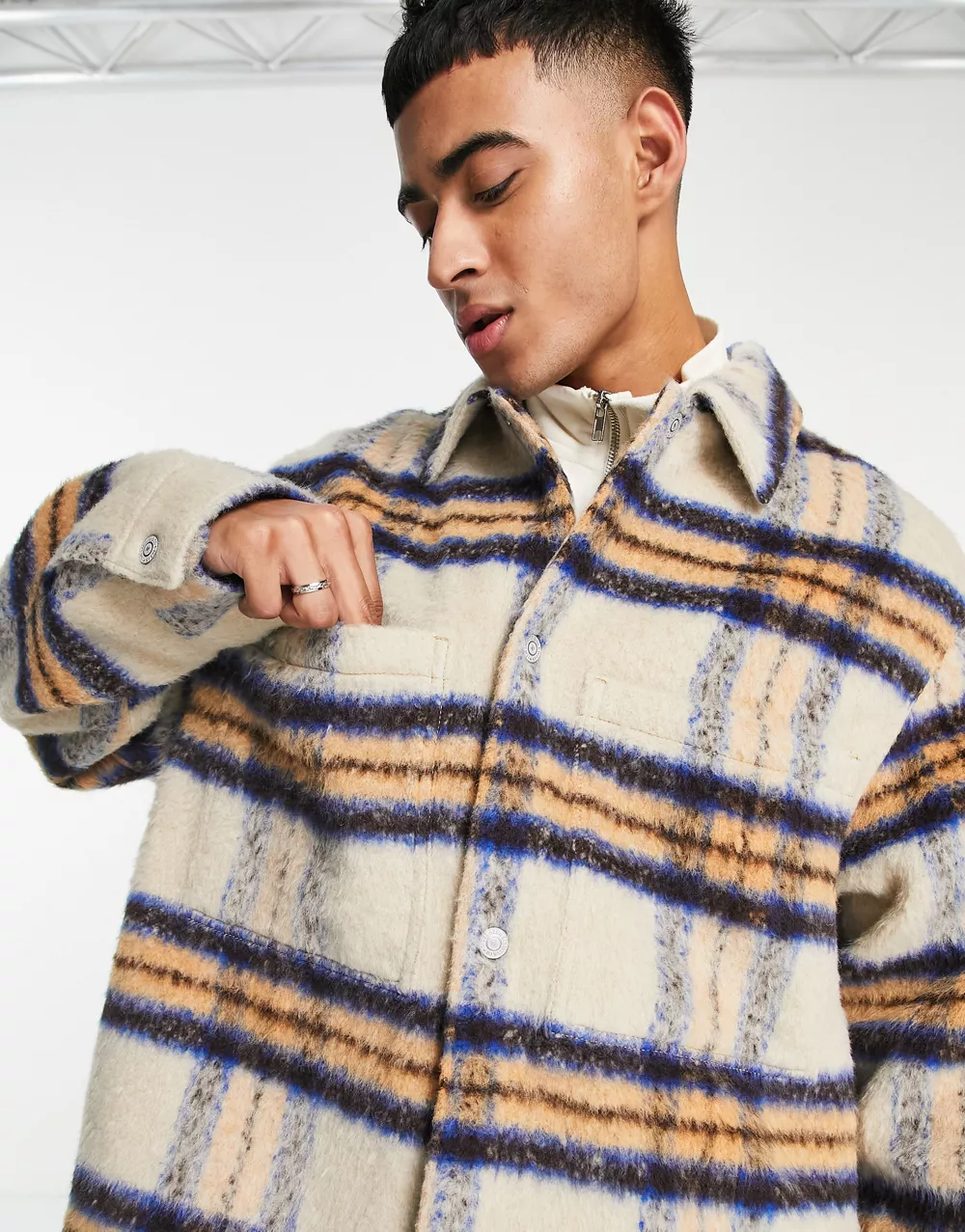 Tommy Jeans ASOS exclusive heritage capsule logo back check overshirt in beige