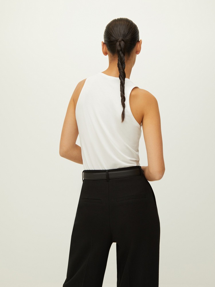 Трикотажный топ с широкими бретелями и американскими проймами — удобная и практичная модель на каждый день. Плотный и мягкий хлопок с шелковистым модалом не мнется и держит форму благодаря небольшому количеству эластана. Рекомендуем подбирать белье в тон.Сделано в Китае.