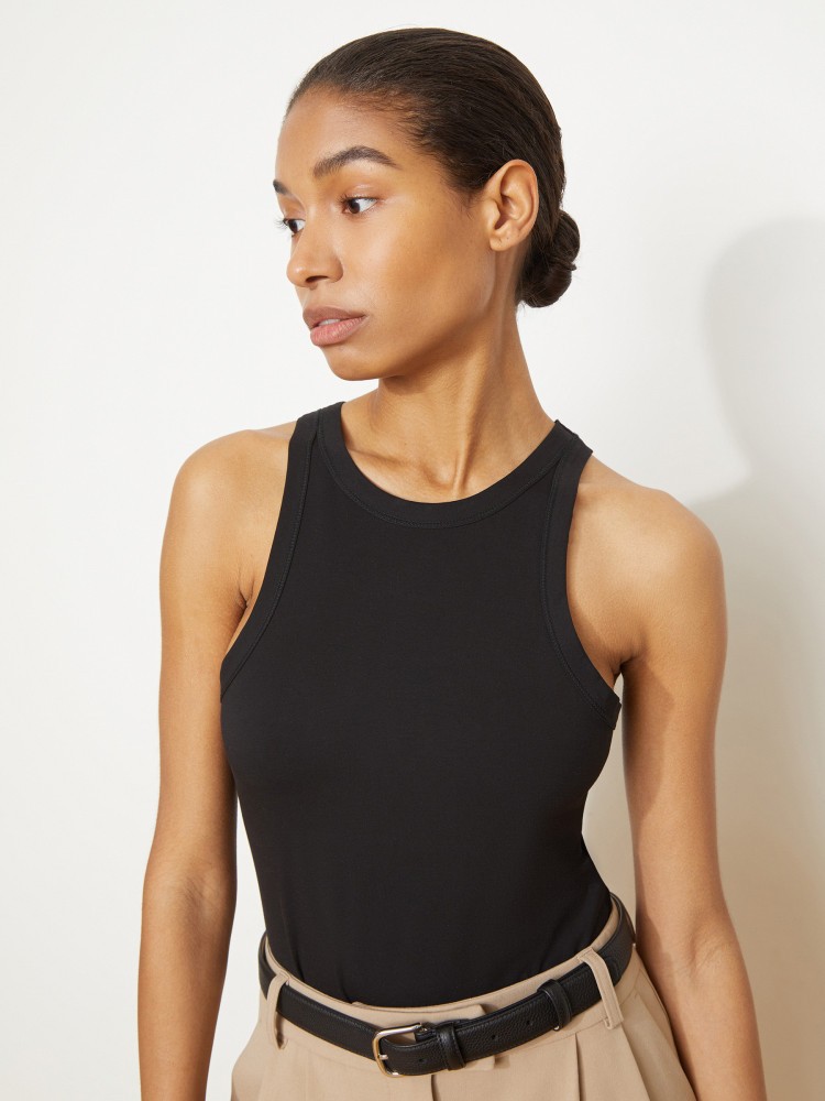 Трикотажная майка — основа летних аутфитов с жакетом или костюмными брюками, юбками миди или шортами. Нежный к коже трикотаж из модала и хлопка хочется носить каждый день, а лаконичный силуэт встраивается в любой образ.Сделано в Китае.