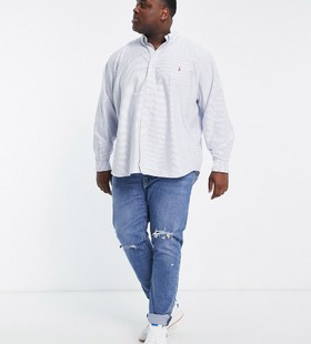 Tommy Jeans timeless logo block stripe windbreaker jacket in blue and white