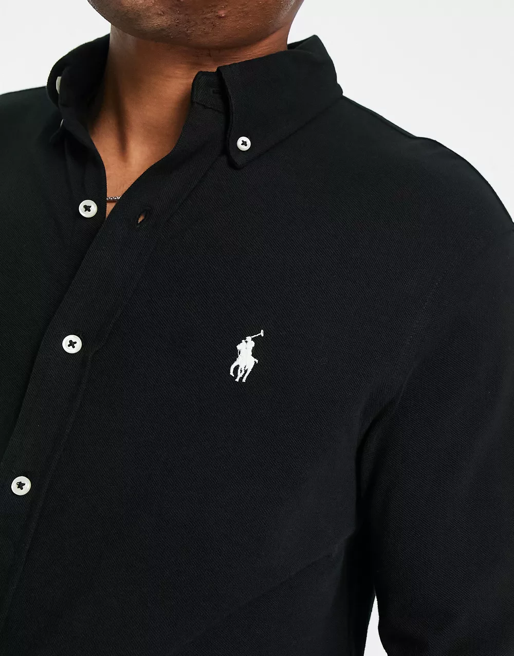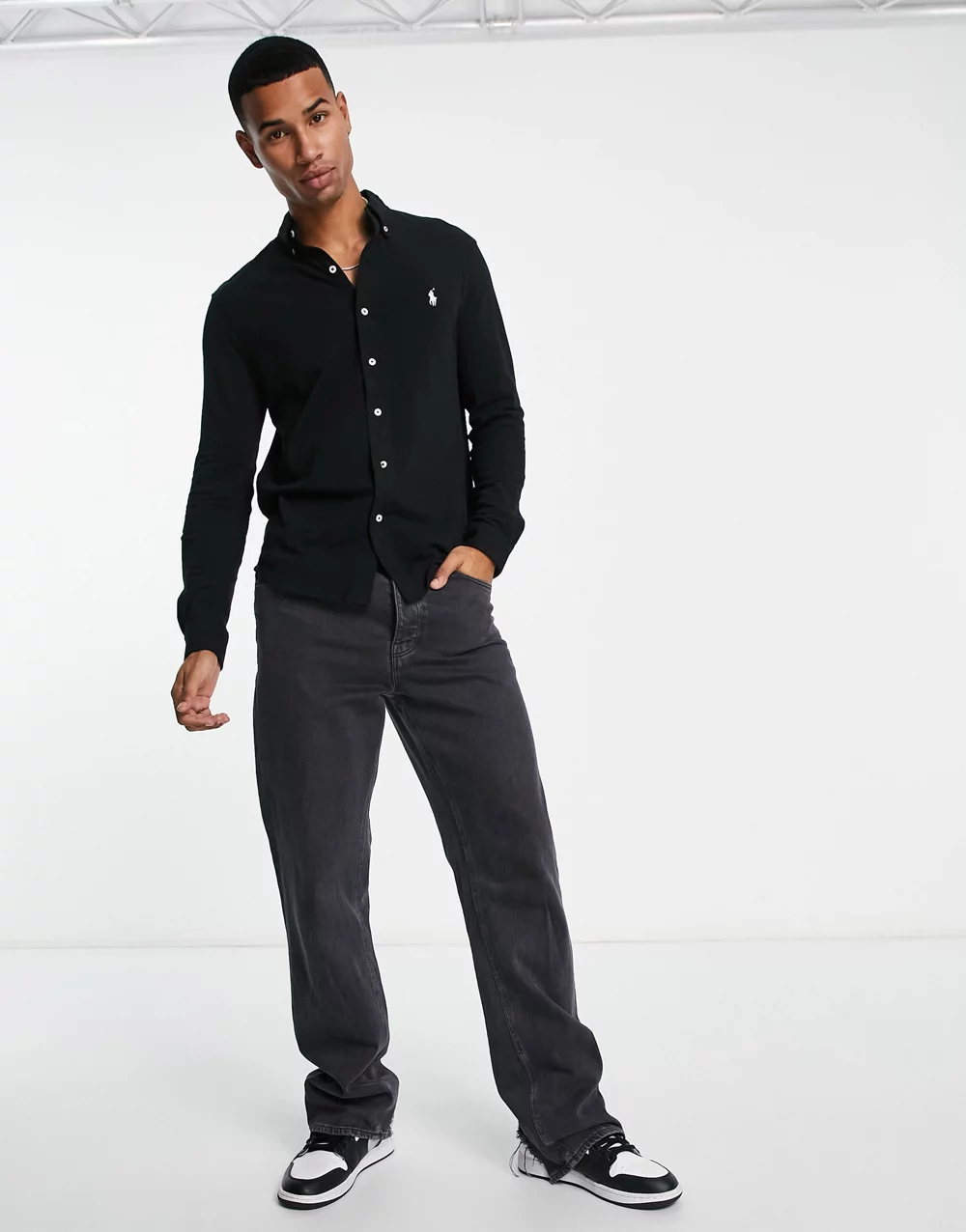 Polo Ralph Lauren Big & Tall icon logo long sleeve pique polo classic oversized fit in black