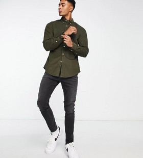 Polo Ralph Lauren icon logo slim fit long sleeve pique polo in dark grey marl