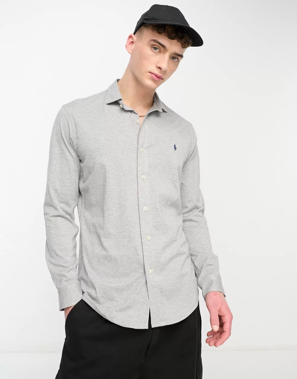 Polo Ralph Lauren icon logo cable cotton knit jumper in grey marl