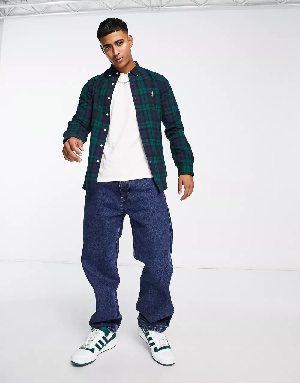Polo Ralph Lauren icon logo slim fit oxford shirt buttondown in slate grey