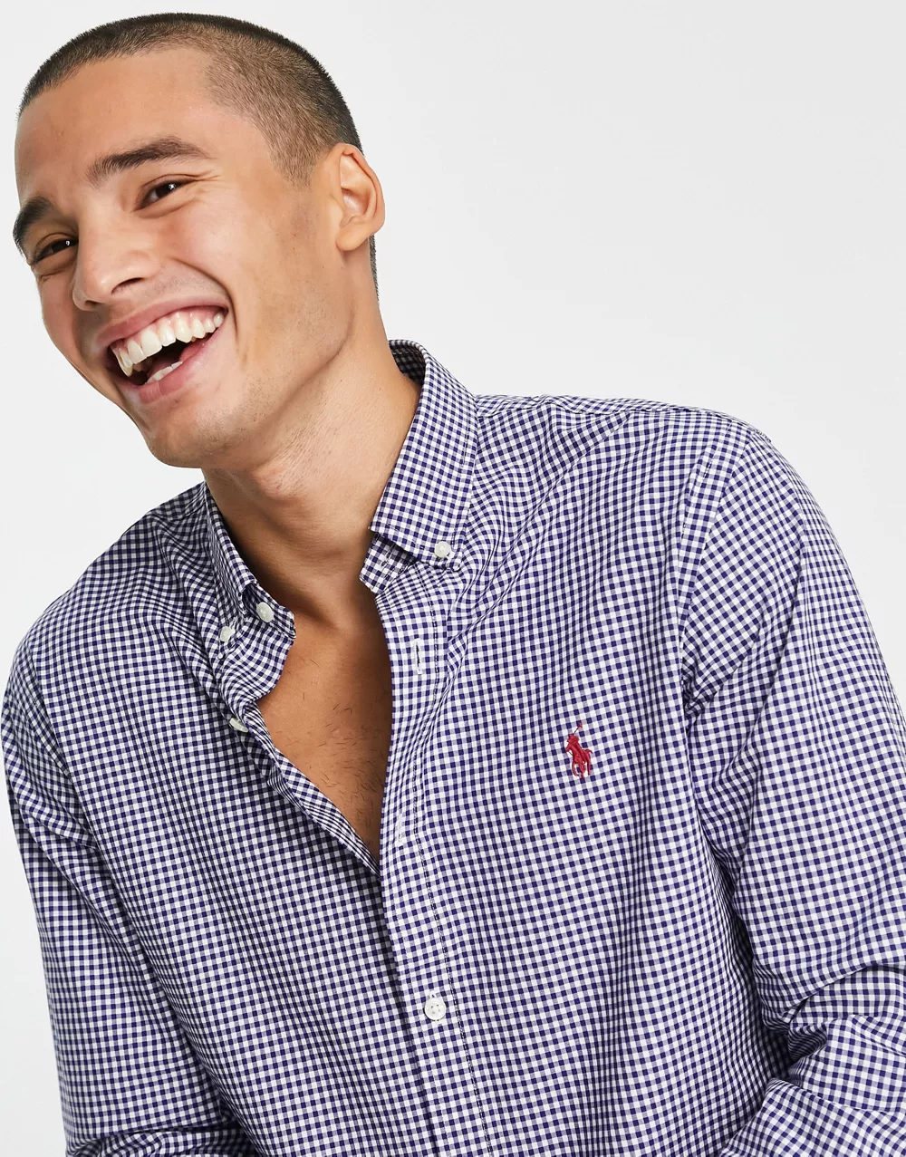 Polo Ralph Lauren icon logo custom fit check poplin dress shirt in burgundy/navy