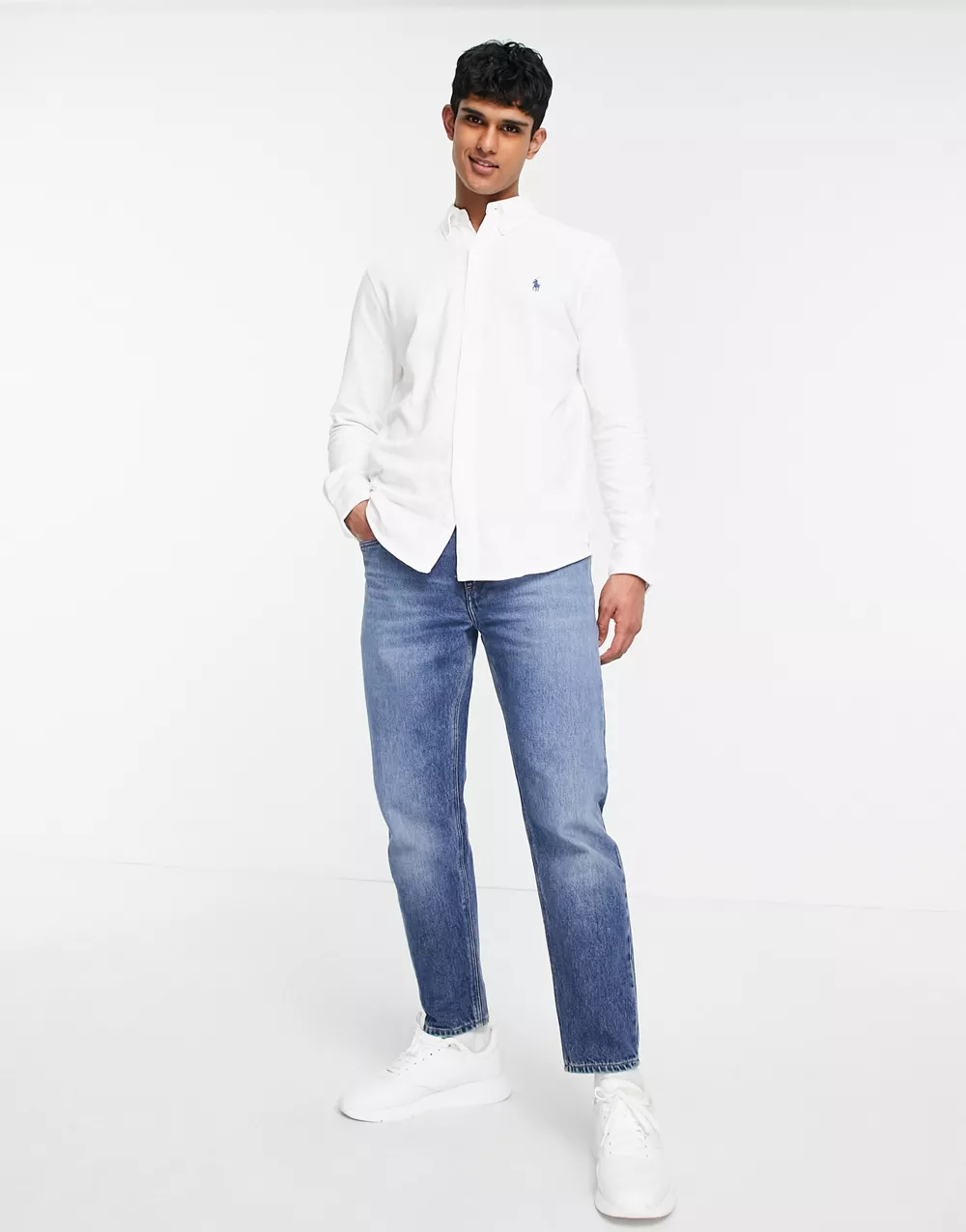Tommy Jeans badge logo stripe long sleeve top relaxed fit in navy