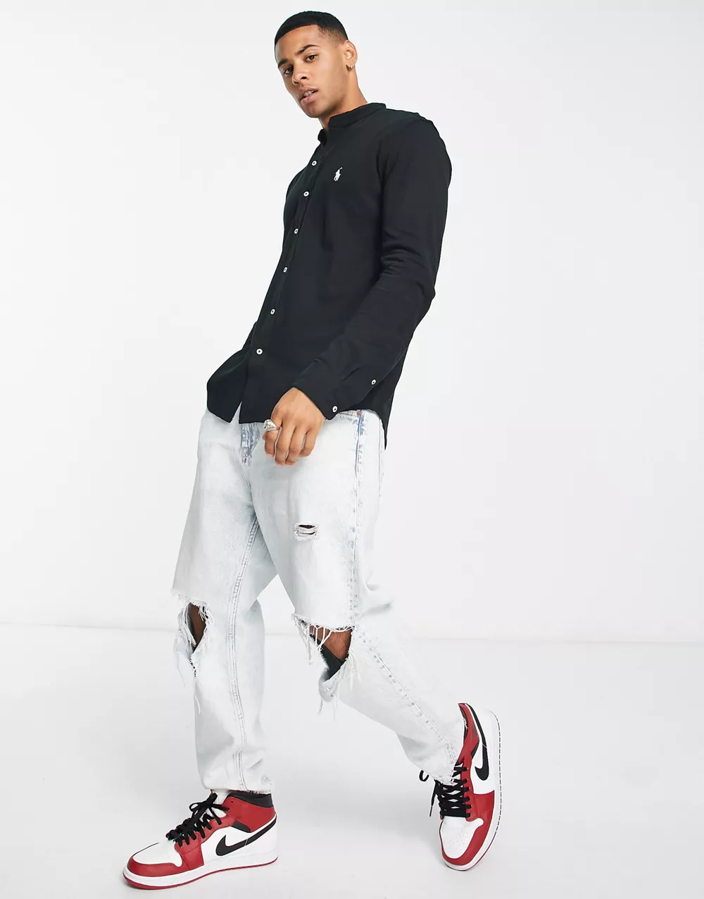 Polo Ralph Lauren pique shirt slim fit button down player logo in white
