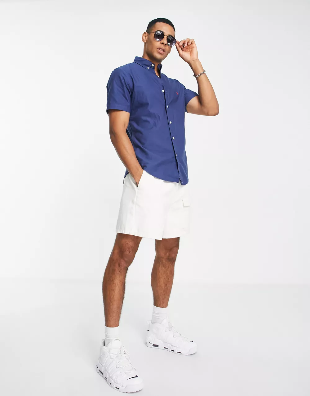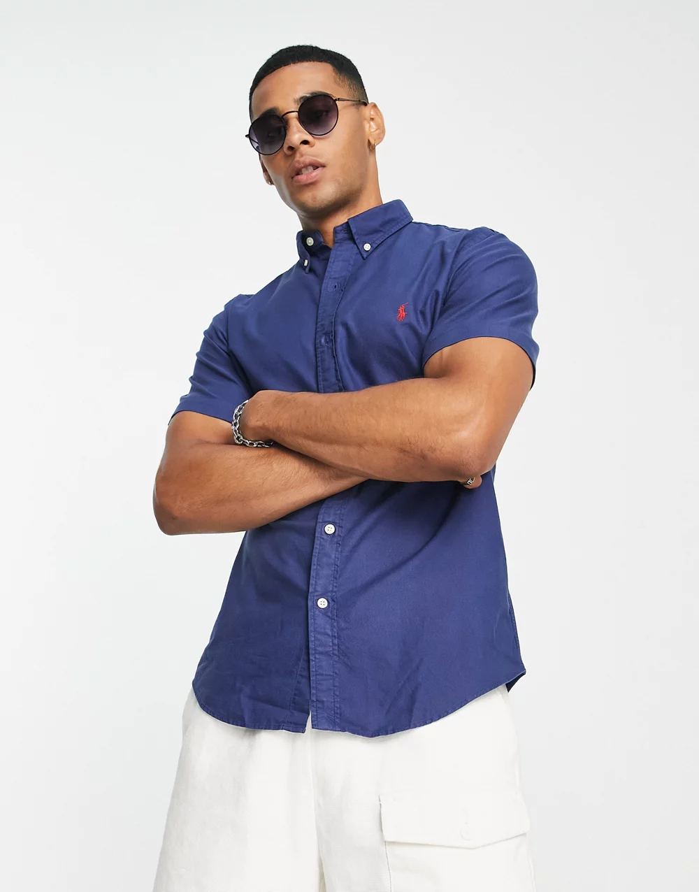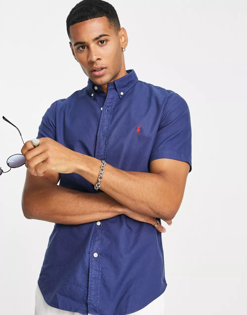 Polo Ralph Lauren slim fit pique grandad shirt with pony logo in navy