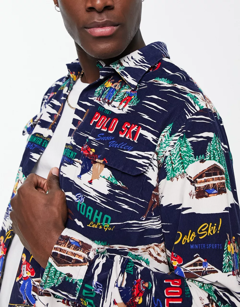 Polo Ralph Lauren El Cap down fill snow traverse print hooded puffer jacket in multi