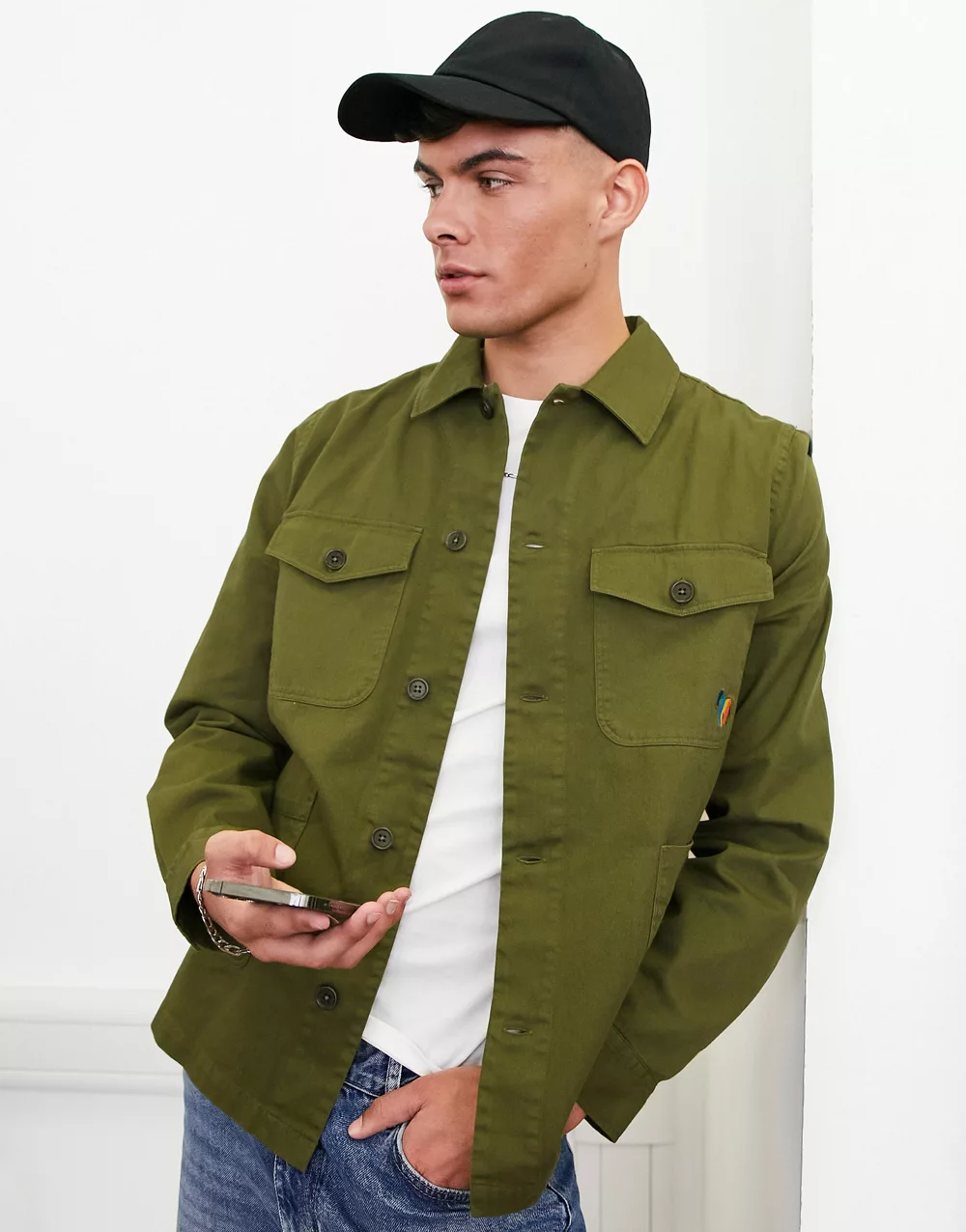 Tommy Jeans flag logo classic fit overshirt in beige