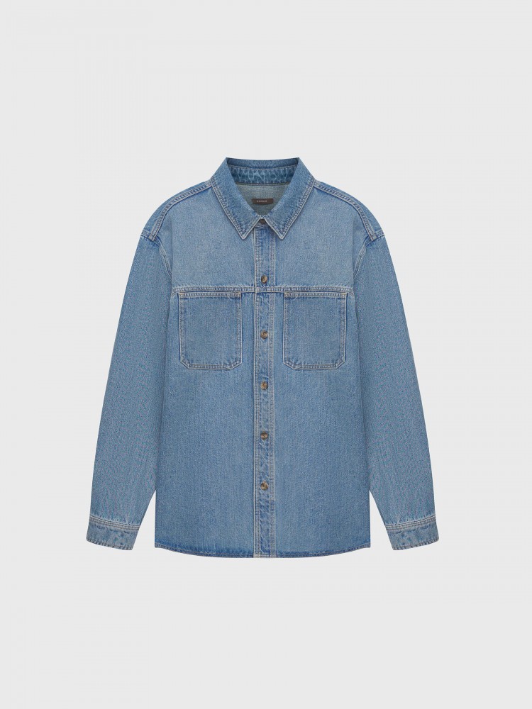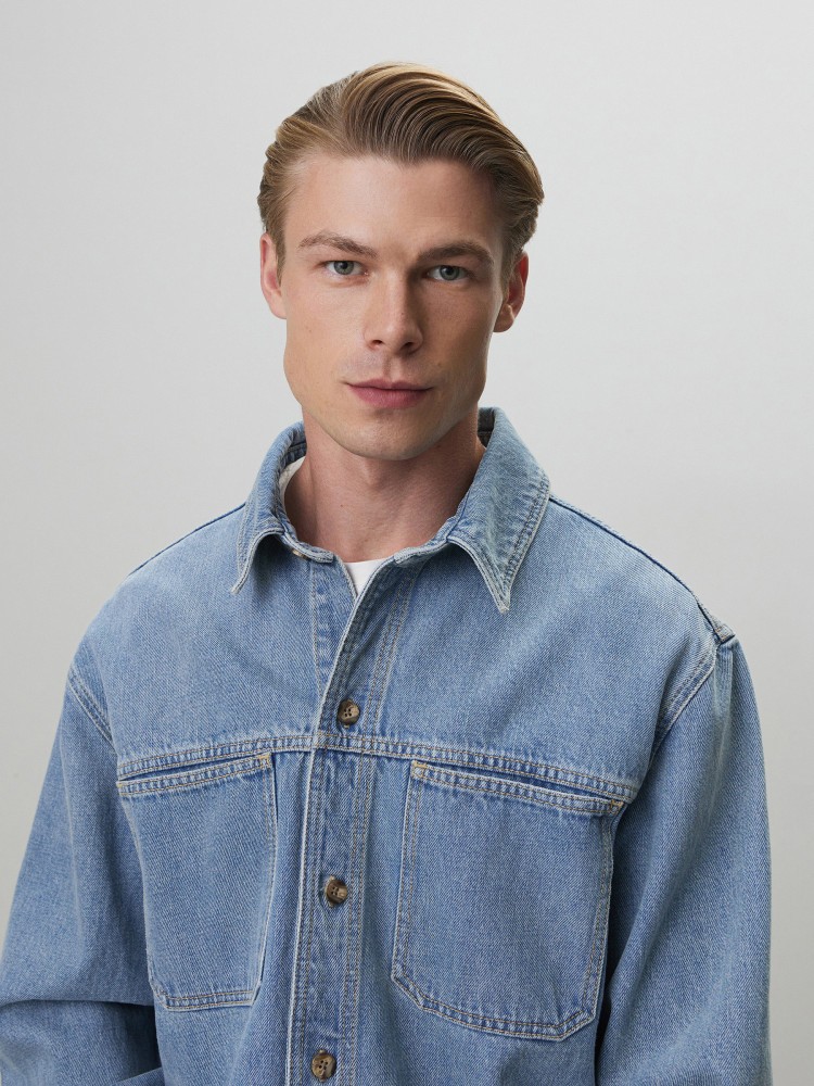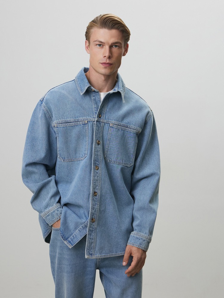 Свободная, но не слишком, рубашка классического синего цвета отлично впишется в образы с футболками и толстовками. Для модели выбрали прочный деним плотностью 13,5 Oz с выраженными эффектами варки по швам.