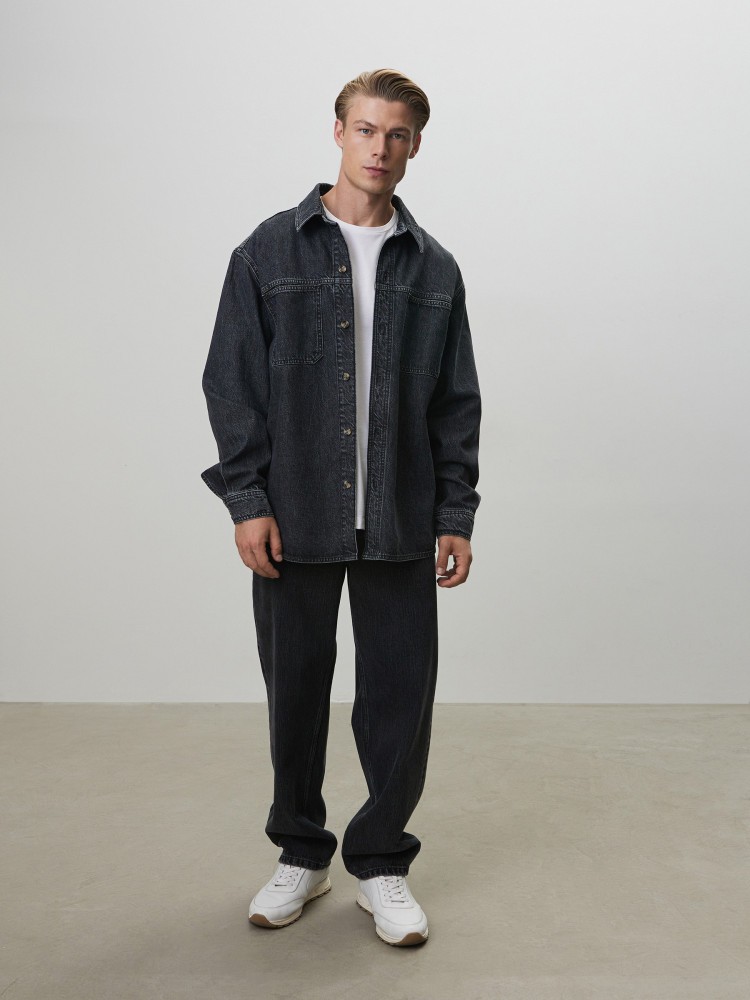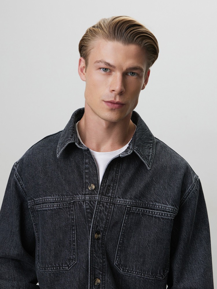 Свободная, но не слишком, рубашка гранжевого графитового оттенка отлично впишется в образы с футболками и толстовками. Для модели выбрали прочный деним плотностью 12,8 Oz с выраженными эффектами варки по швам.Сделано в Сербии.