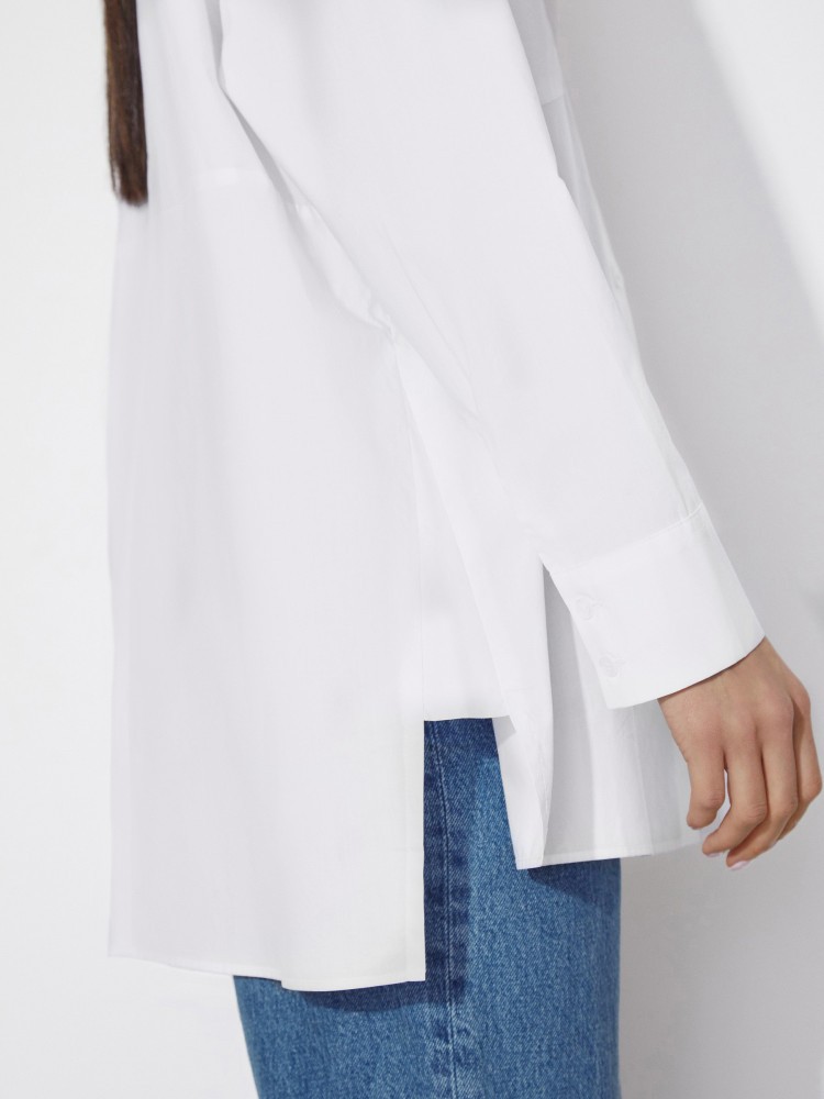 Удлиненная рубашка в полоску впишется в любые образы, от расслабленных до формальных. Для модели выбран 100% тонкий хлопок с обработкой Paper touch — благодаря финишу рубашка кажется слегка накрахмаленной и возможностей для стилизации появляется еще больше.Сделано в Китае.