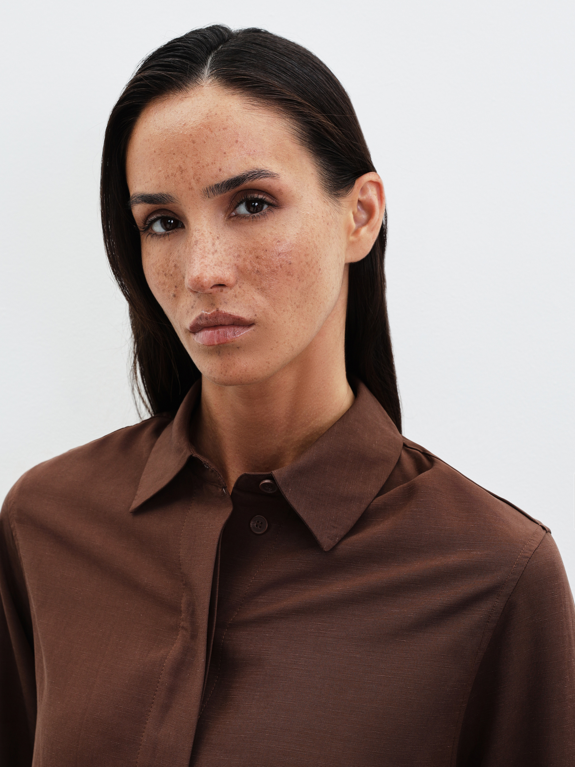 Параметры: Застежка: пуговица; Наличие карманов: без карманов; Тип рукава: длинный; Вырез горловины: отложной воротничок