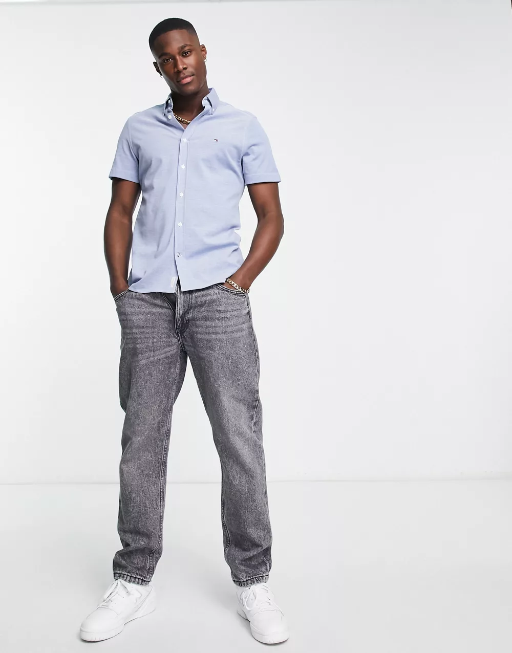 HUGO 634/2 tapered fit cargo jeans in mid blue
