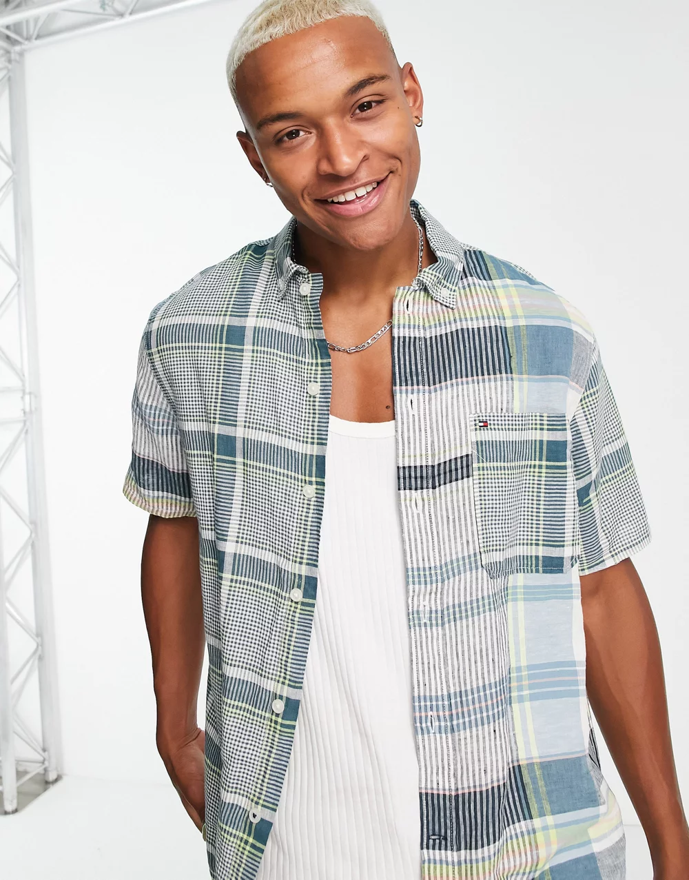 Tommy Hilfiger flag logo exaggerated structure knit jumper in khaki tan