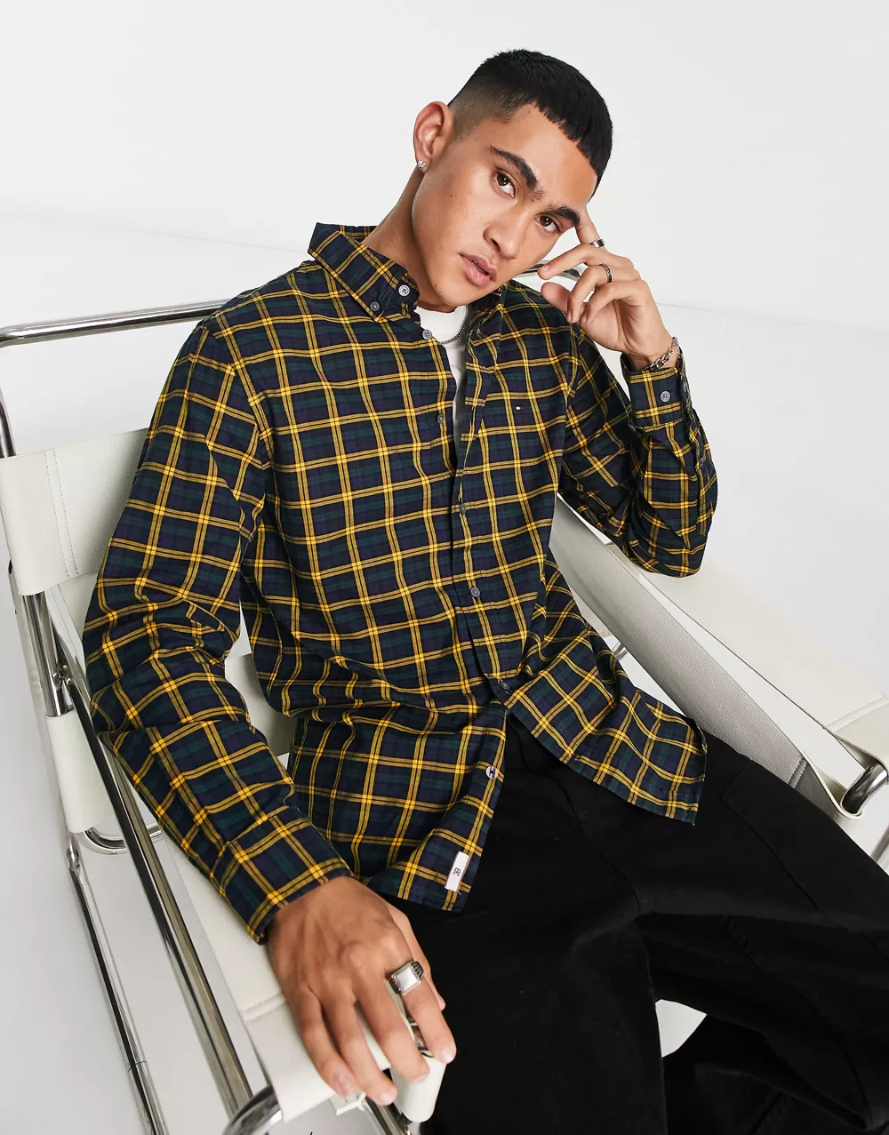 Barbour Beacon large tartan logo crew neck sweatshirt in green