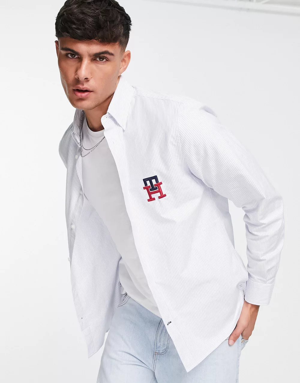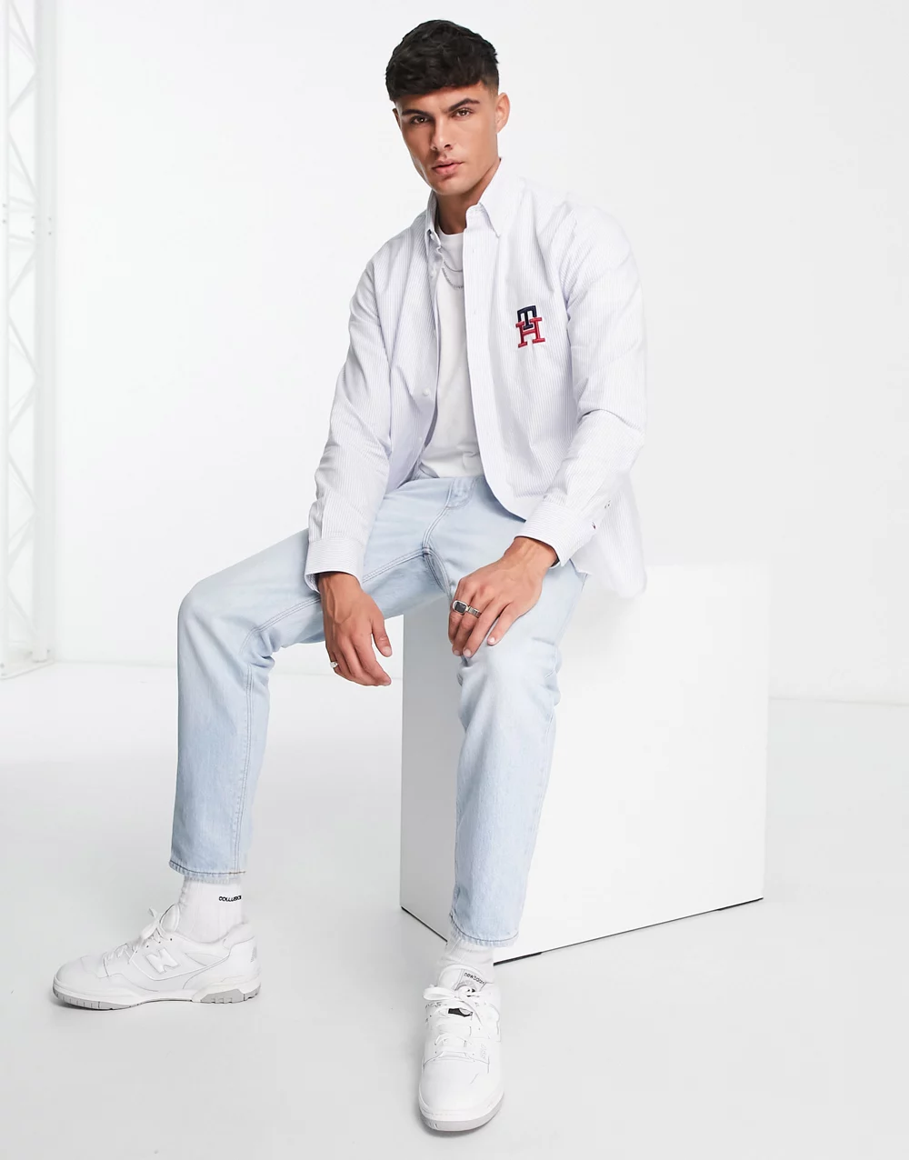 Polo Ralph Lauren Big & Tall stripe oxford shirt with pony logo in blue/white