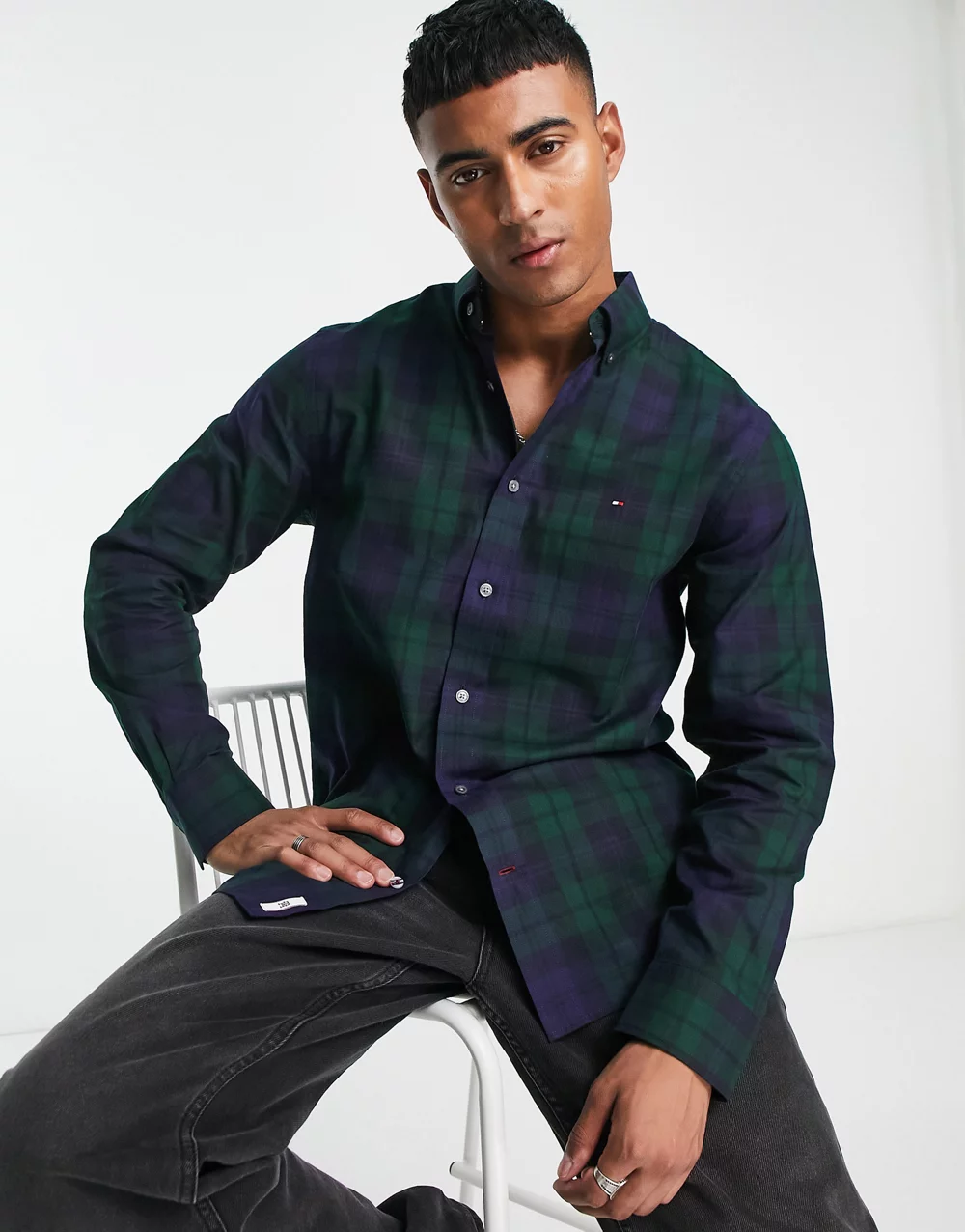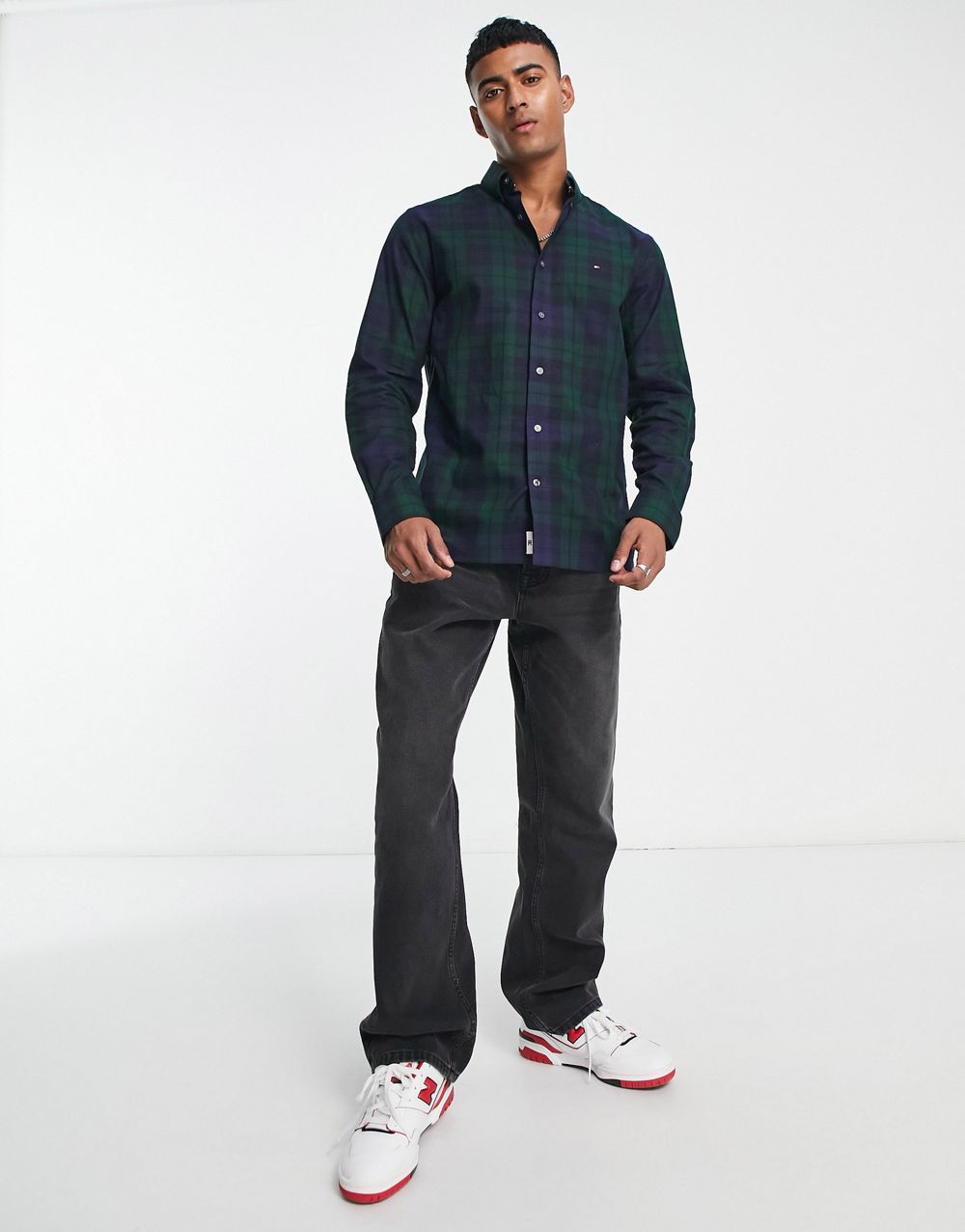 Tommy Hilfiger Big & Tall long sleeve shirt in green plaid
