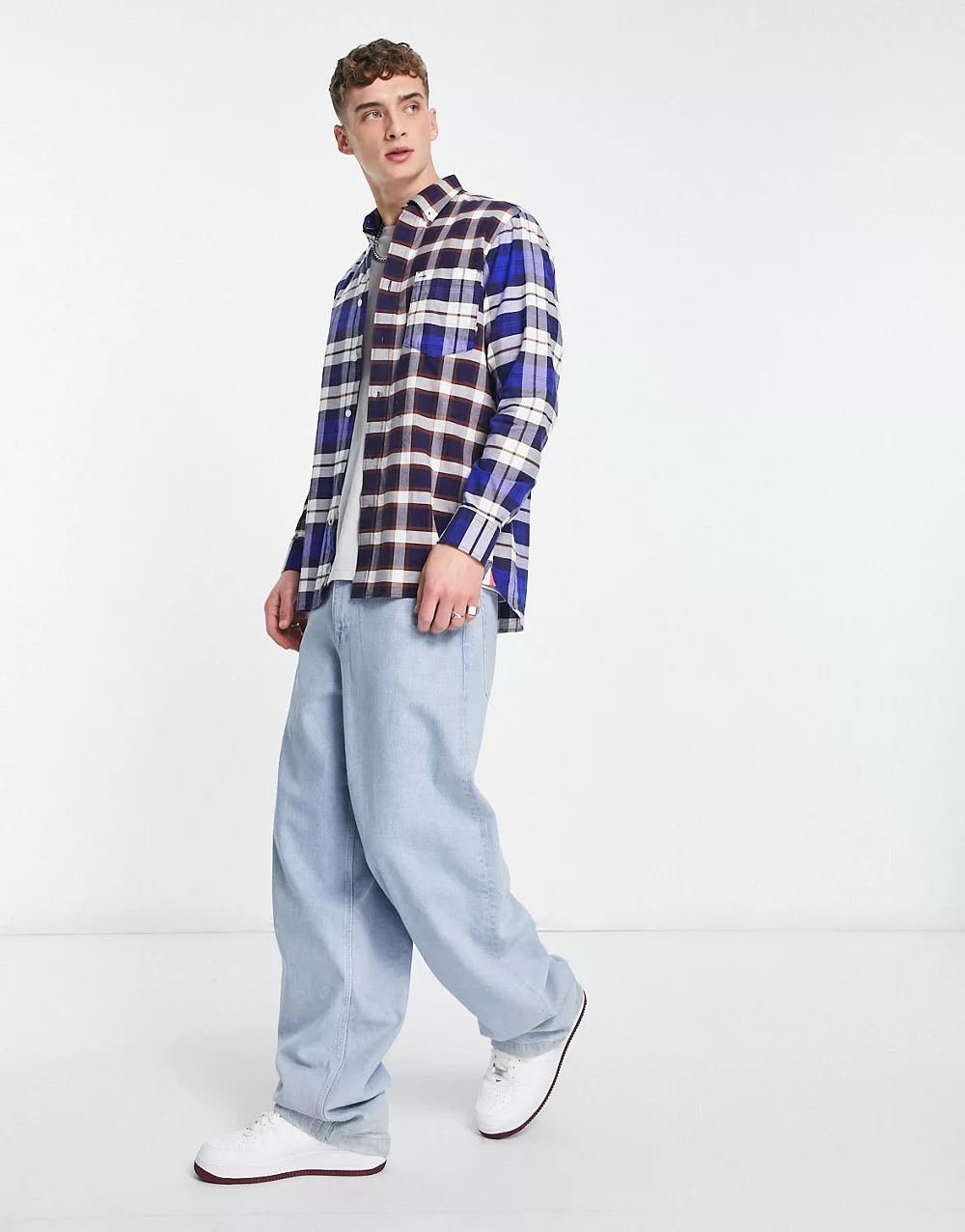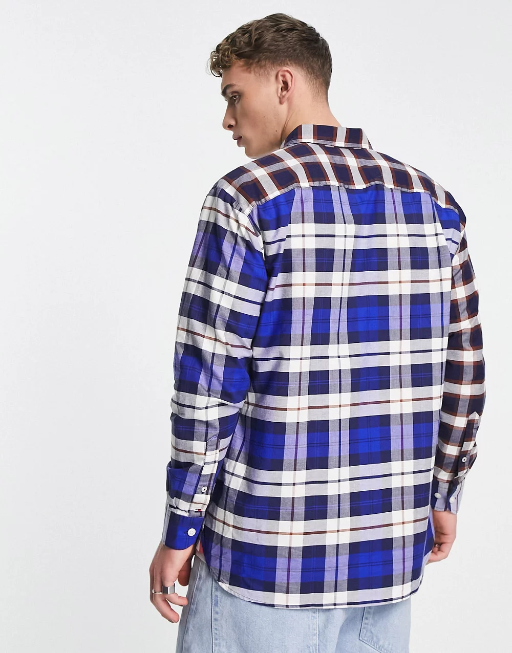 Tommy Hilfiger large linen cotton check shirt regular fit in navy