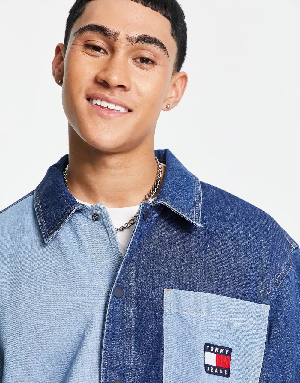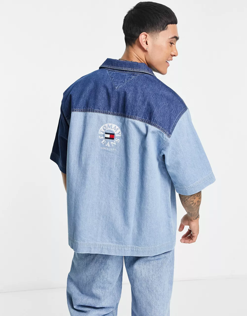 Tommy Jeans central flag vertical stripe skater fit t-shirt in yellow