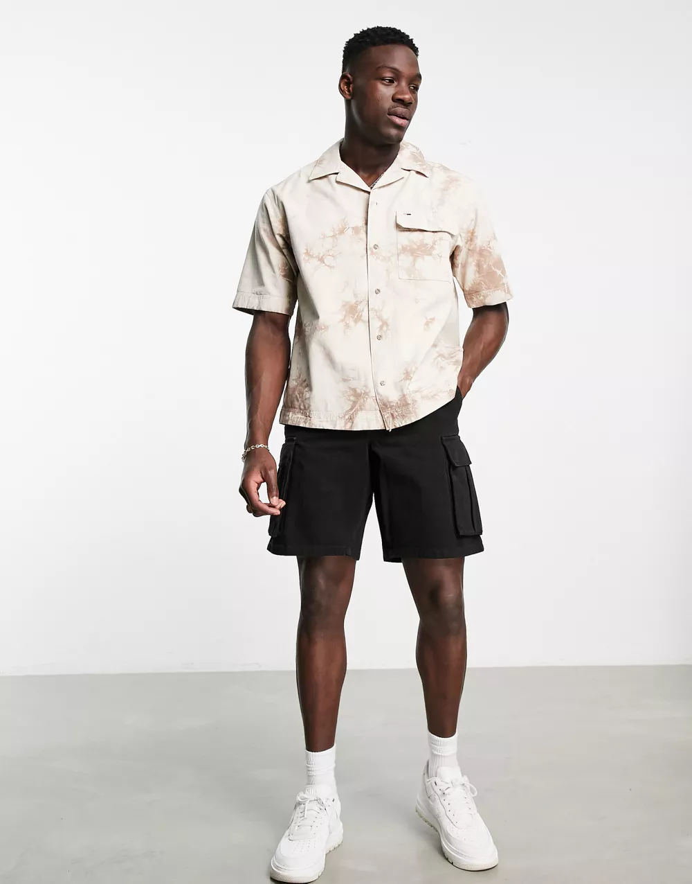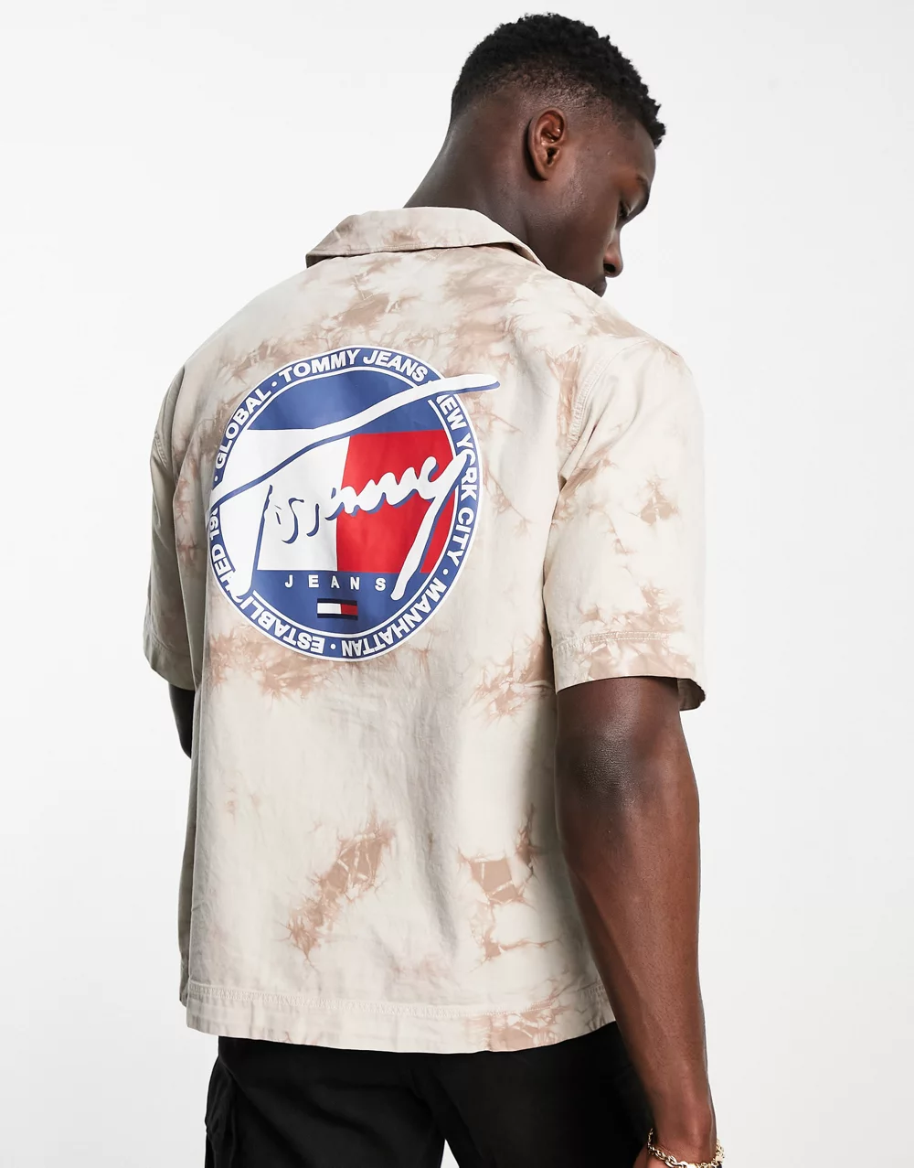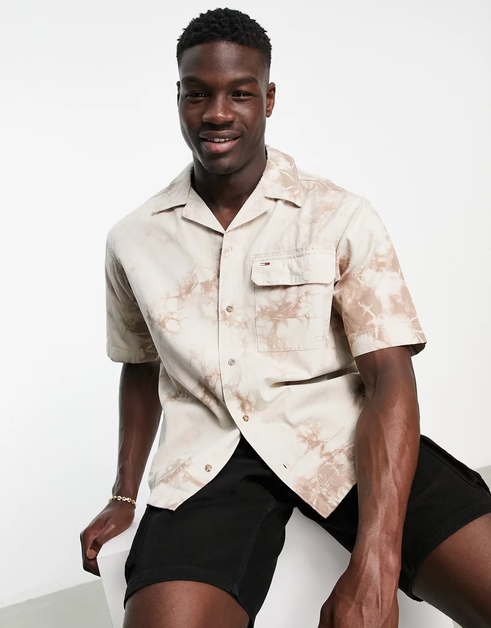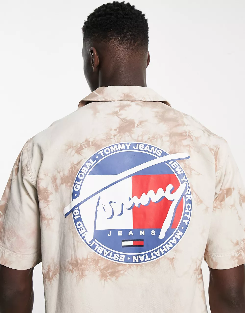 Tommy Hilfiger blown up varied stripe short sleeve shirt custom fit in navy