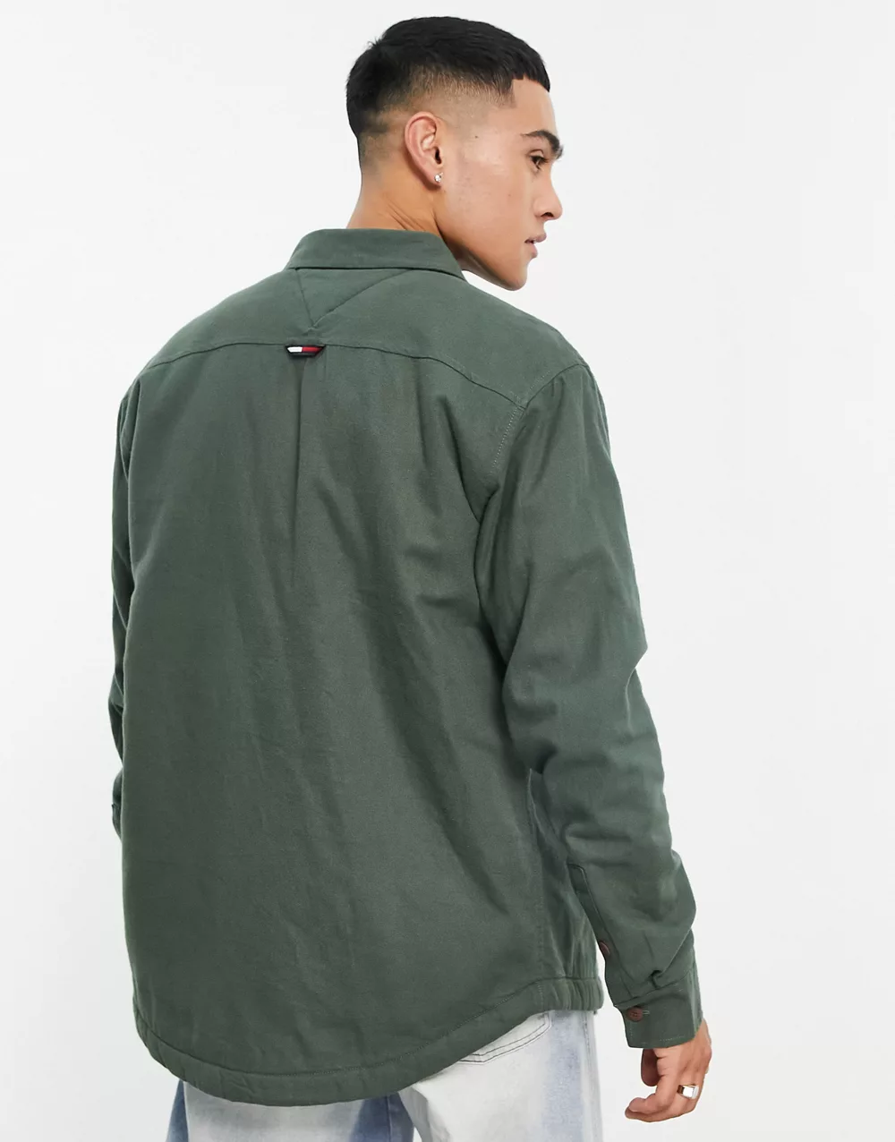 Tommy Jeans cotton oversized archive back logo sherpa lined denim trucker jacket in dark wash