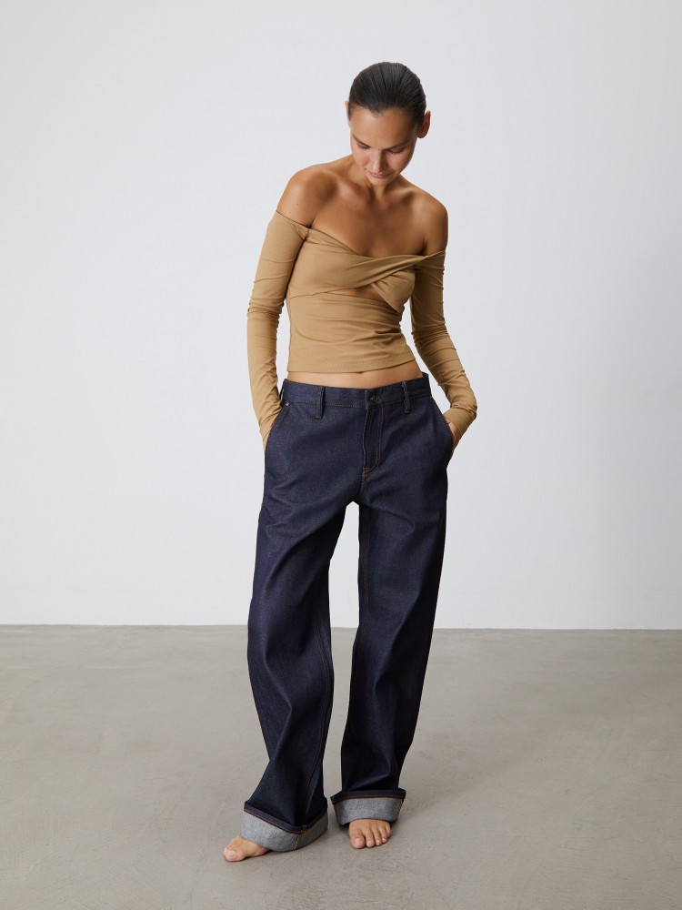 Трикотажный топ с открытыми плечами поможет вам иначе взглянуть на casual-гардероб. Мягкий дышащий трикотаж хочется носить каждый день — с джинсами и шортами, а вечерний крой позволяет стилизовать топ для выхода — например, с брюками из шелка.Сделано в России.