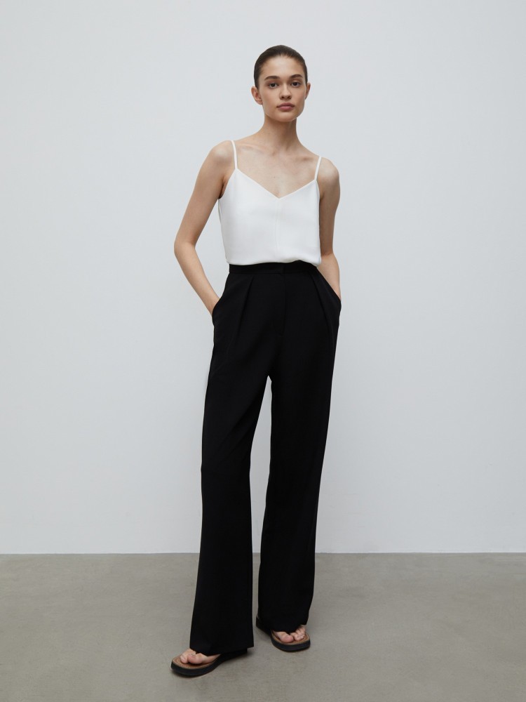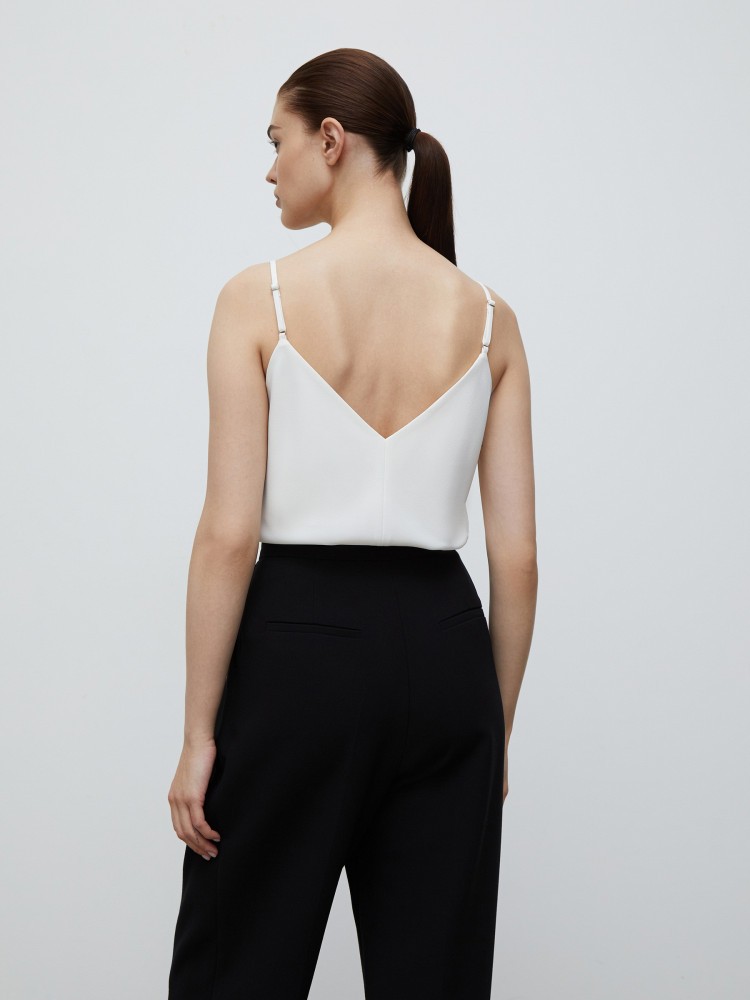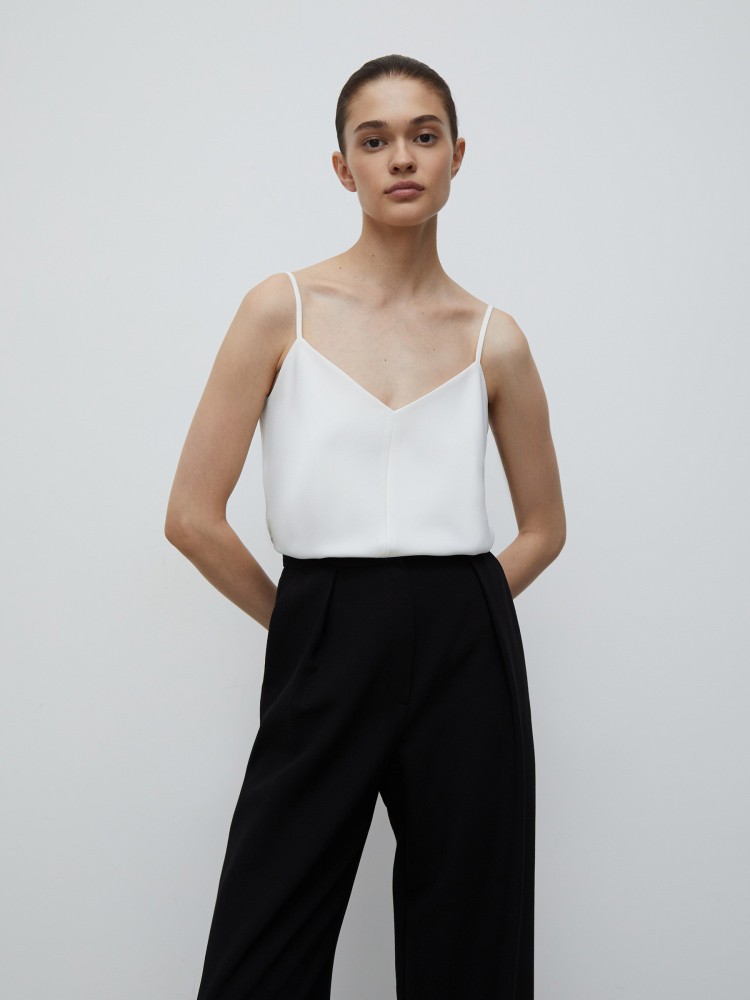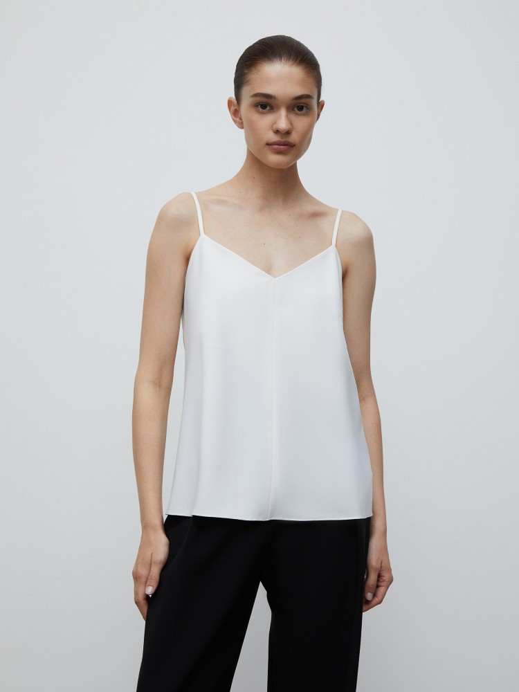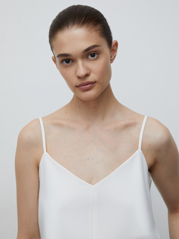 Полуприталенный топ на тонких бретелях с регуляторами — базовая модель, которую полюбили наши покупатели. Для топа выбрали мягкую и пластичную испанскую ткань с сатиновым блеском, тонкую и дышащую.Сделано в России.