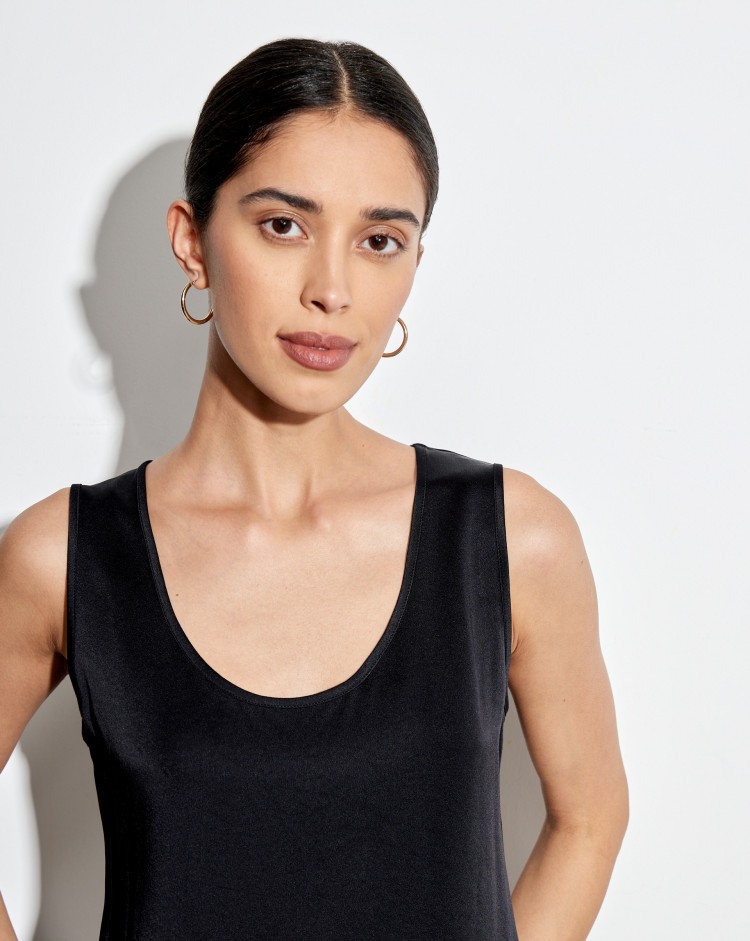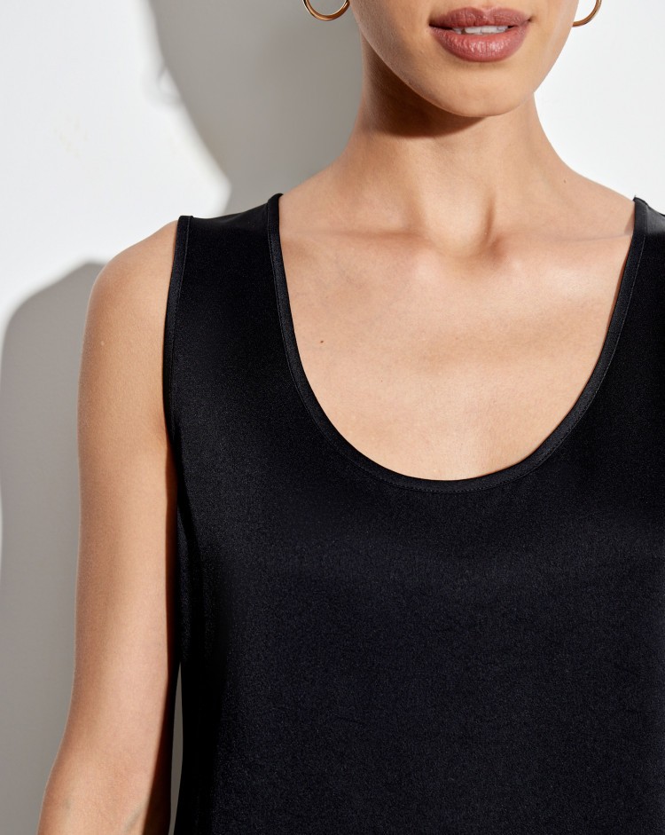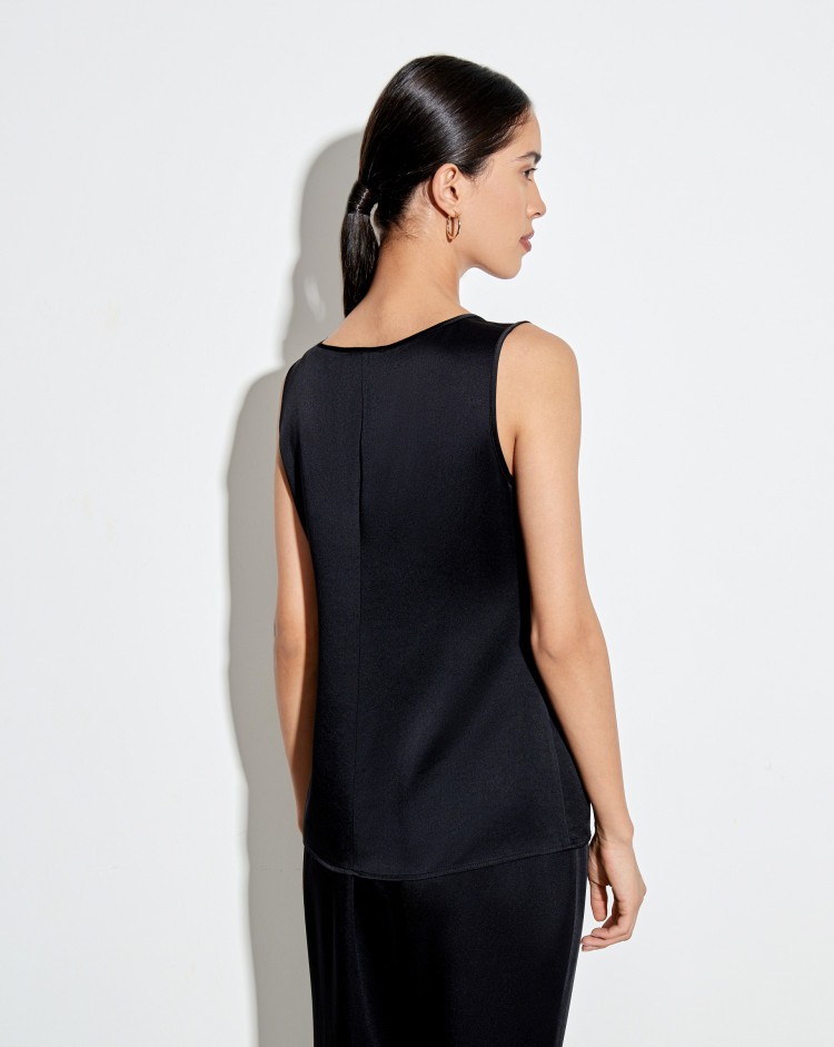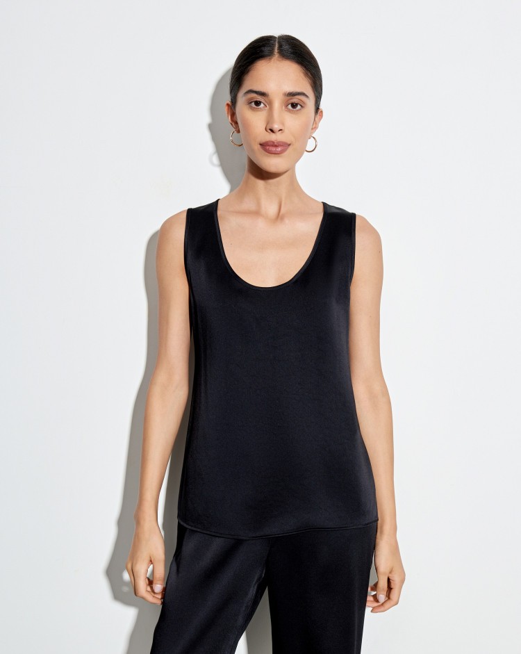 Топ из переливающегося искусственного шелка. Удобные широкие бретели и лаконичный силуэт — этот топ легко сделать частью образа с жакетами или носить с юбками и брюками.
