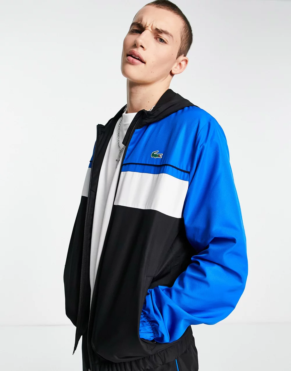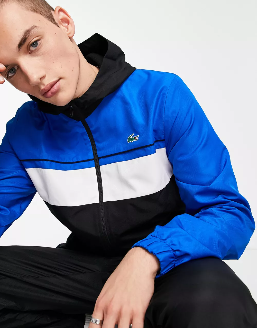 Tommy Hilfiger polyester blend tech stand collar colourblock jacket in cream - CREAM