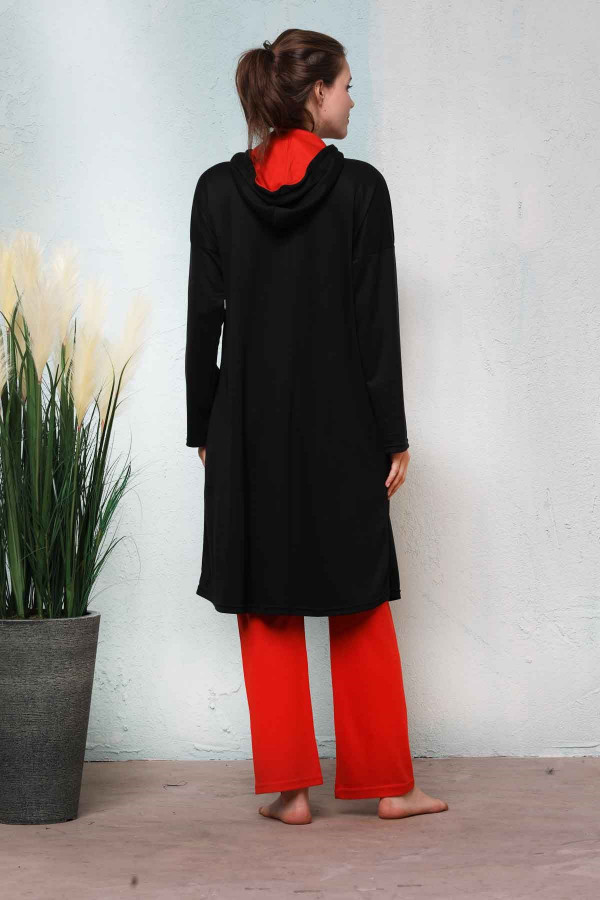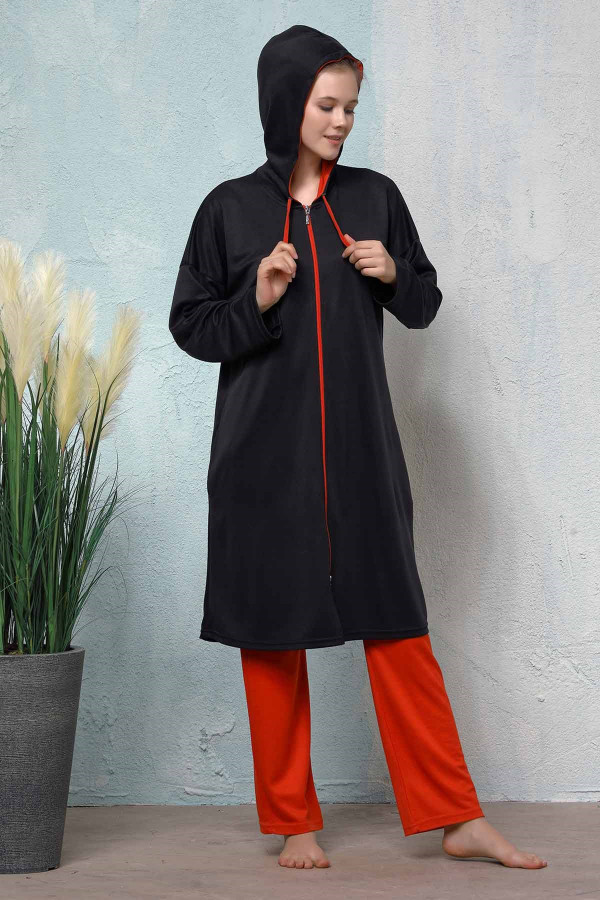 Комплект женского спортивного костюма, состоит из двух частей: верхней и нижней. Цвет: черный.Тип ткани: хлопок – полиэстер.Полиэстер (содержит небольшое количество эластана). Характеристика модели: Изделие изготовлено из специально скроенной ткани, которая позволит вам комфортно передвигаться, заниматься спортом, например, бегом и ходьбой, а также в повседневной жизни. Комплект спортивного костюма имеет двухстороннюю молнию и капюшон. Рукава и щиколотки выполнены в рубчик из собственной ткани, спереди есть карманы в стиле кенгуру, внизу – два обычных кармана. Фактура ткани легкая и не мешает заниматься спортом. При этом ваше тело дышит благодаря особой ткани.