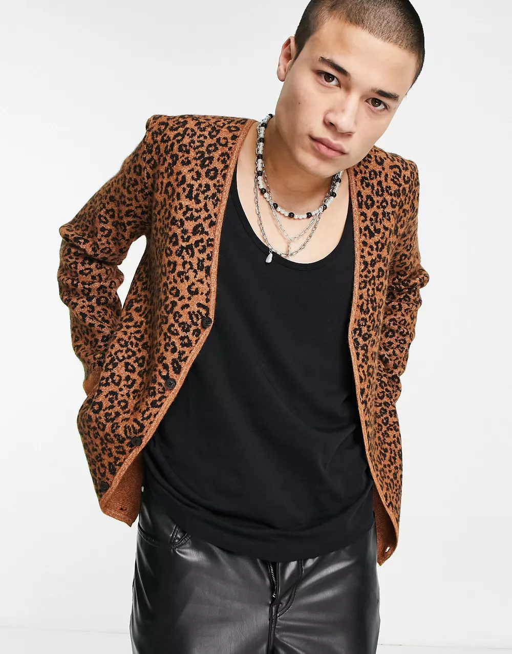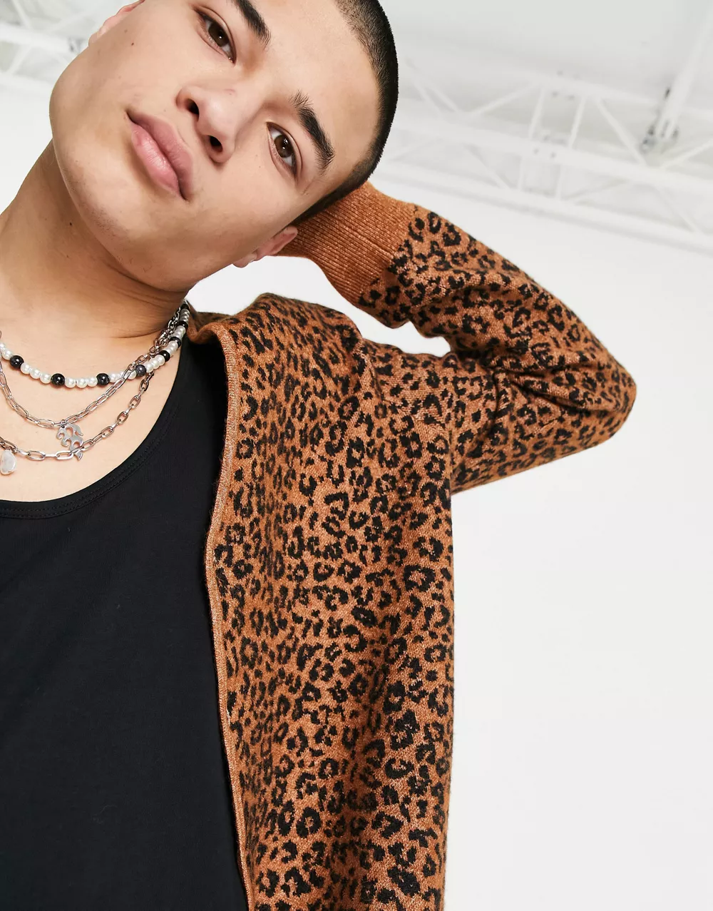 - AllSaints kat animal print cardigan in brown 2507245136-50
