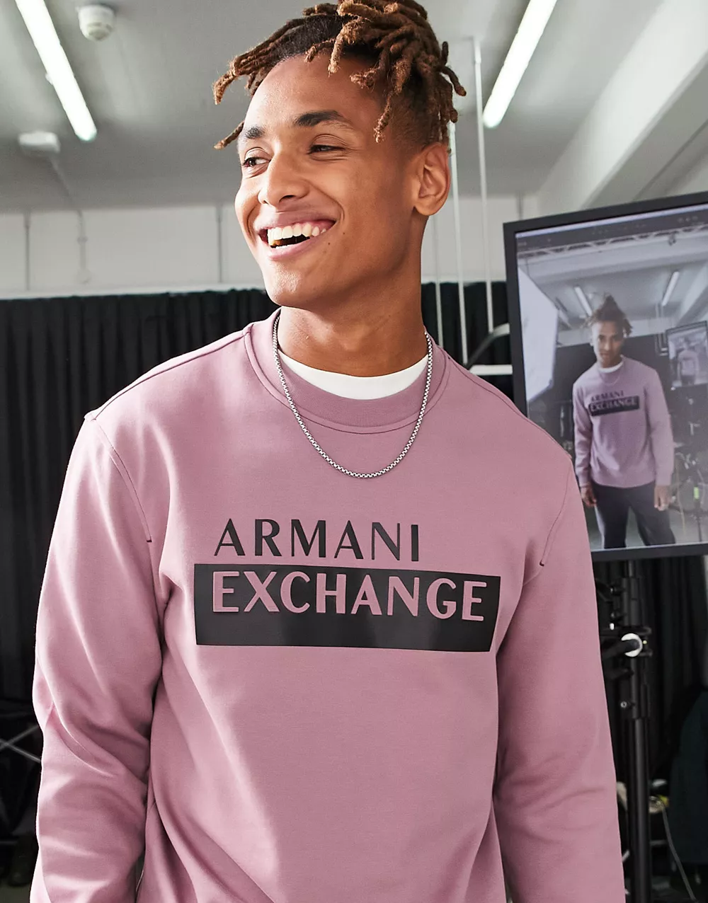 - Armani Exchange box logo sweatshirt in pink