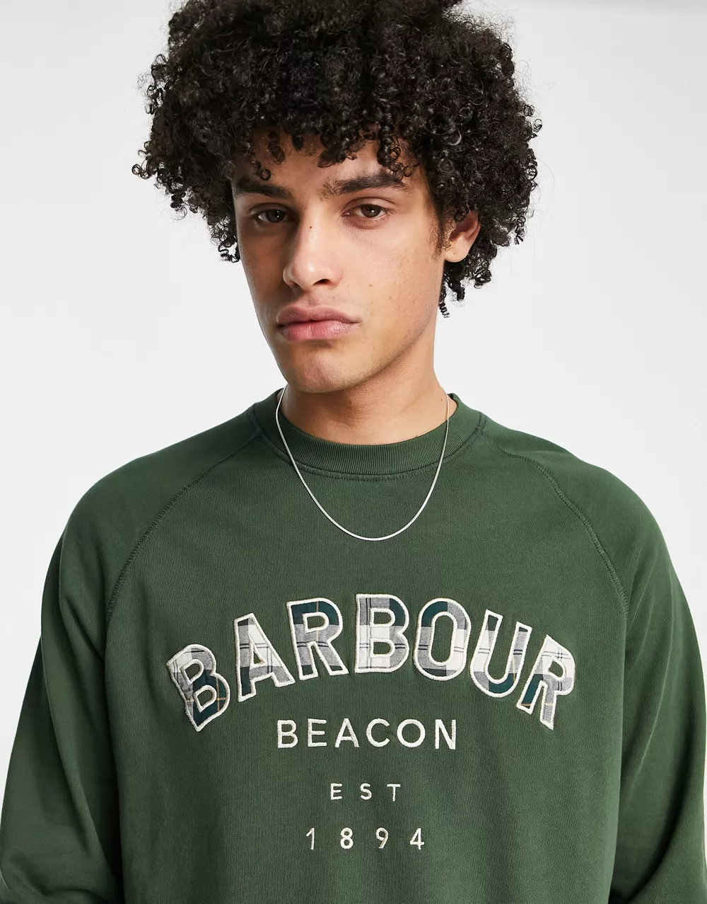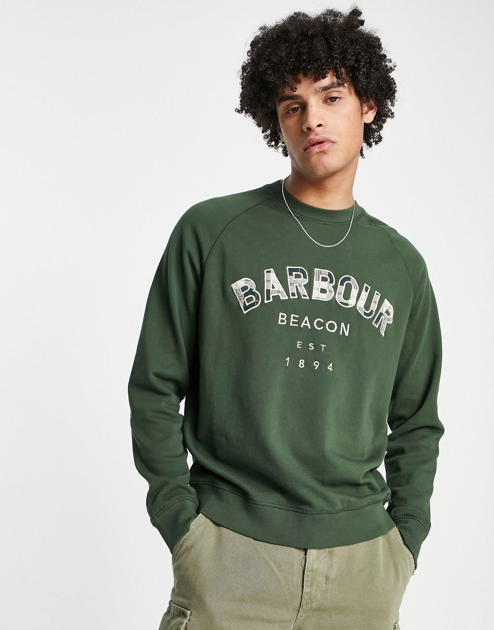 - Barbour Beacon large tartan logo crew neck sweatshirt in green