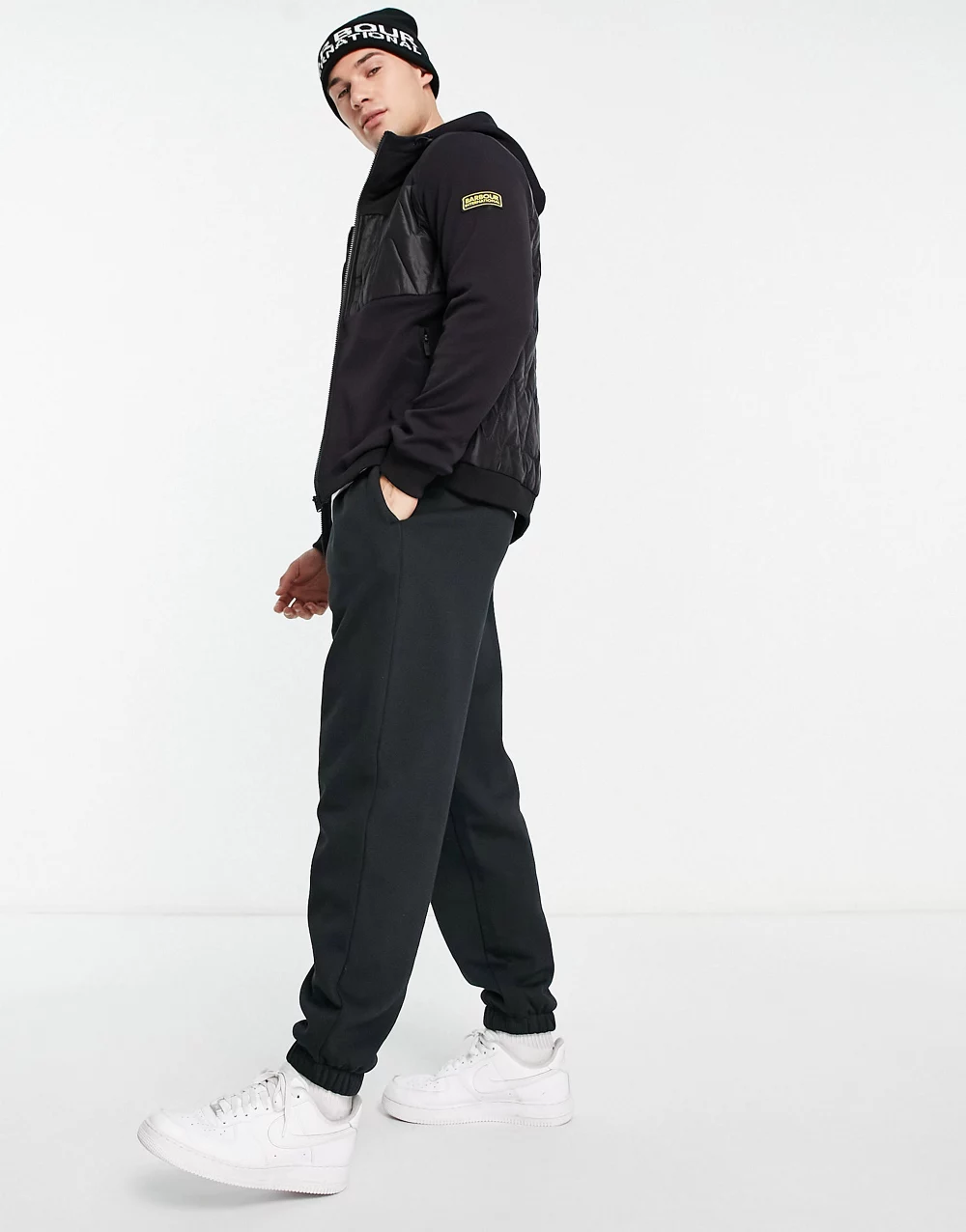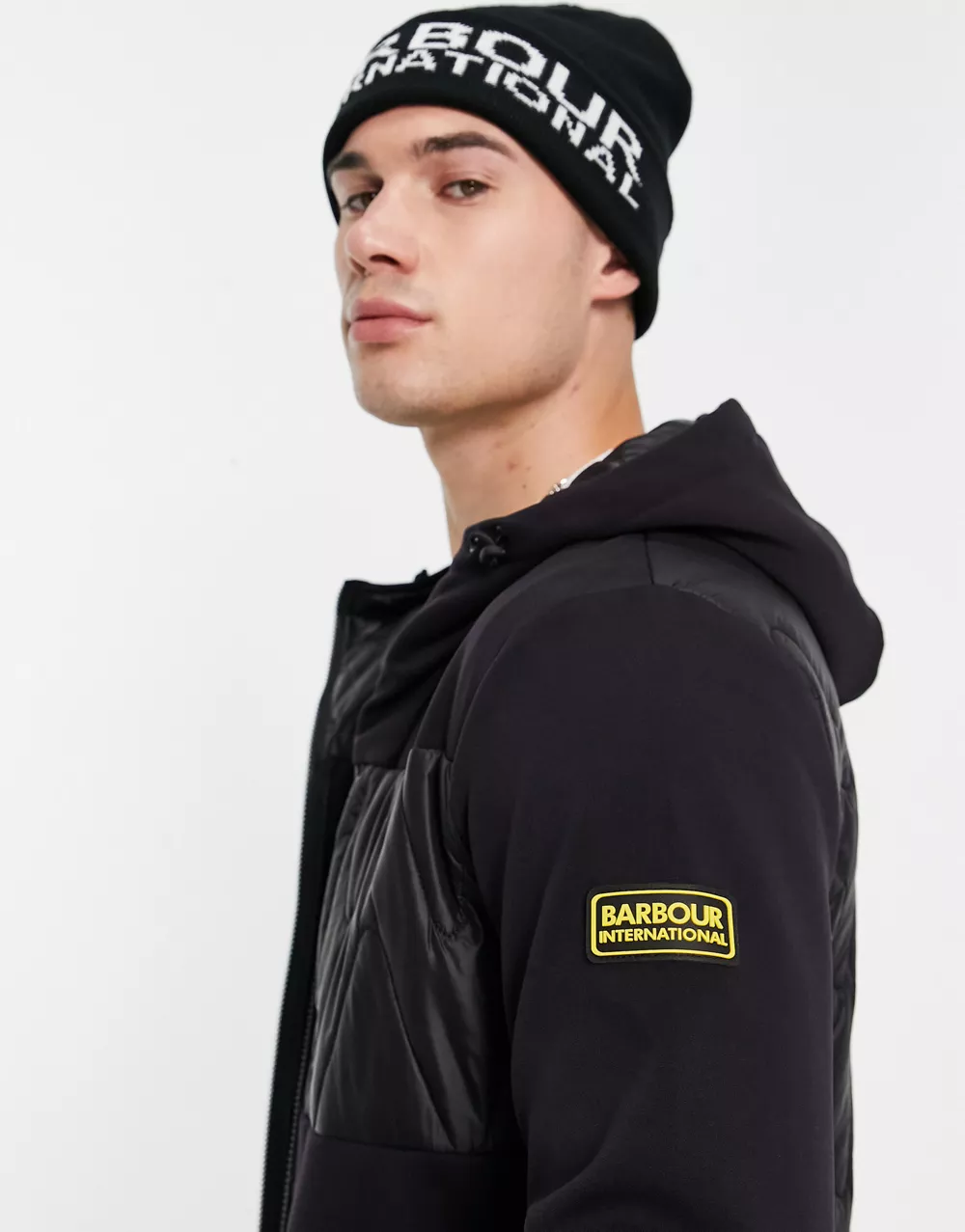 - Barbour International Racer quilted zip hoodie in black