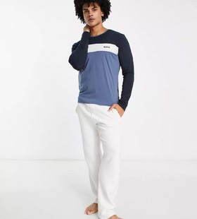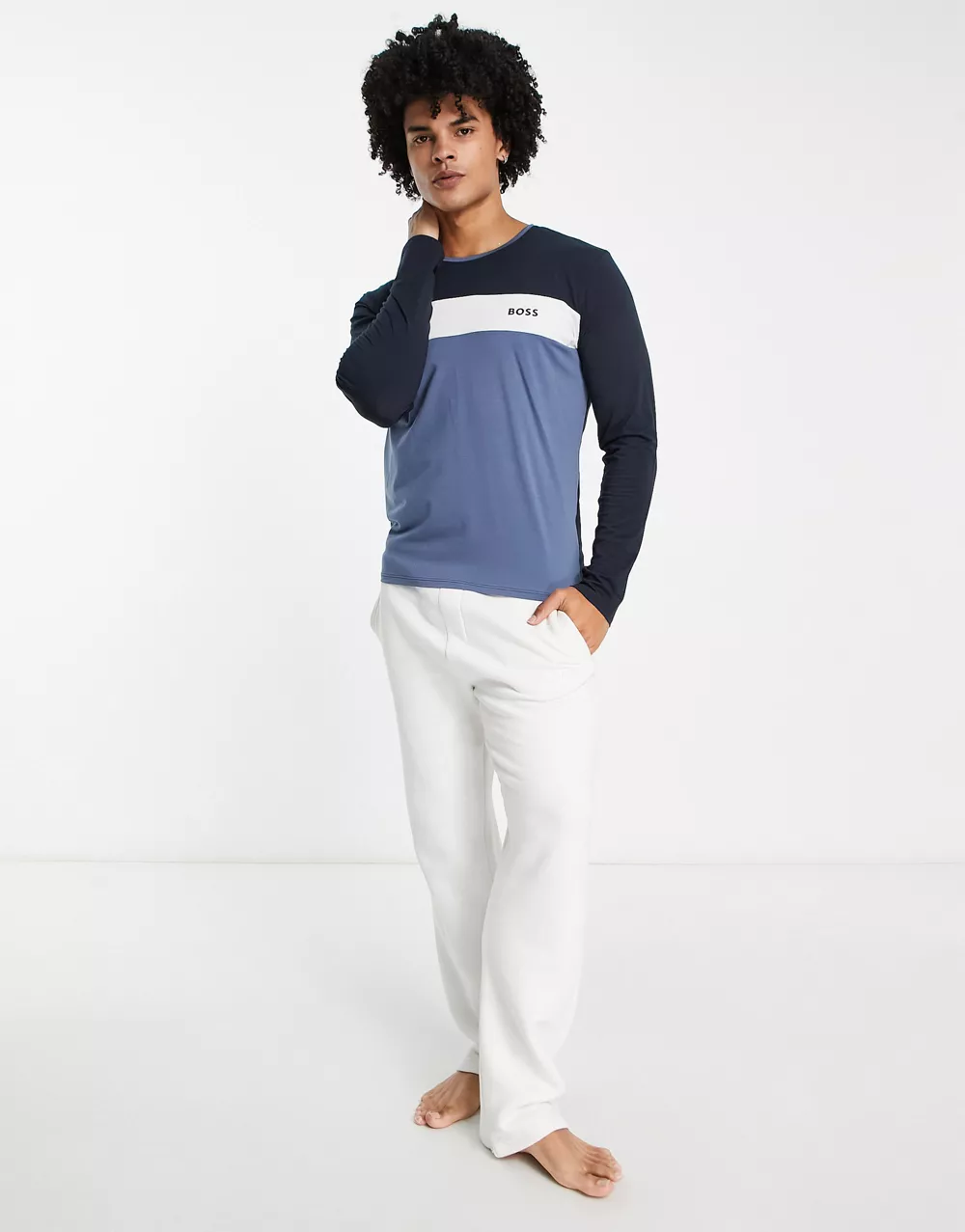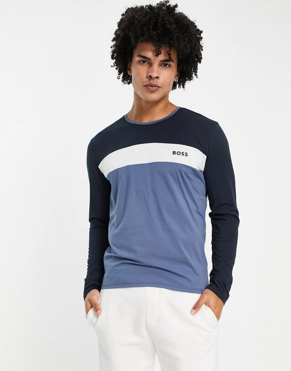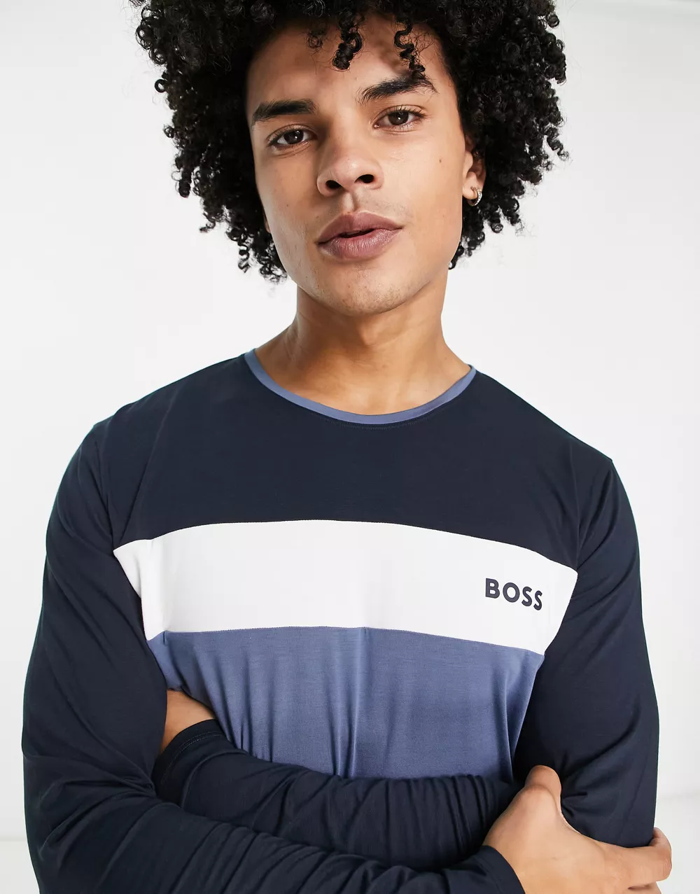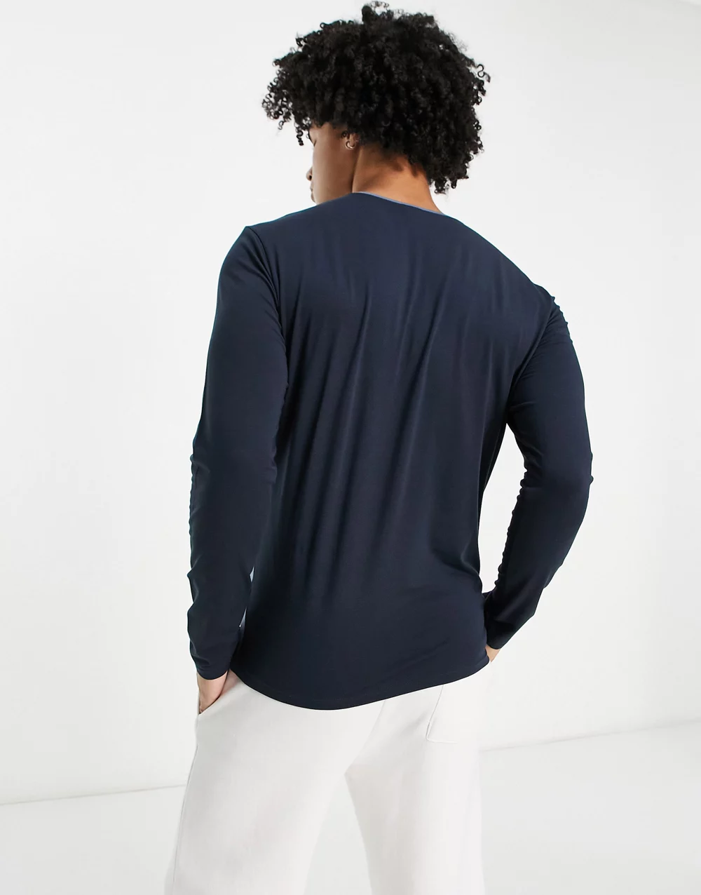 - BOSS Bodywear Balance long sleeve top in navy and blue