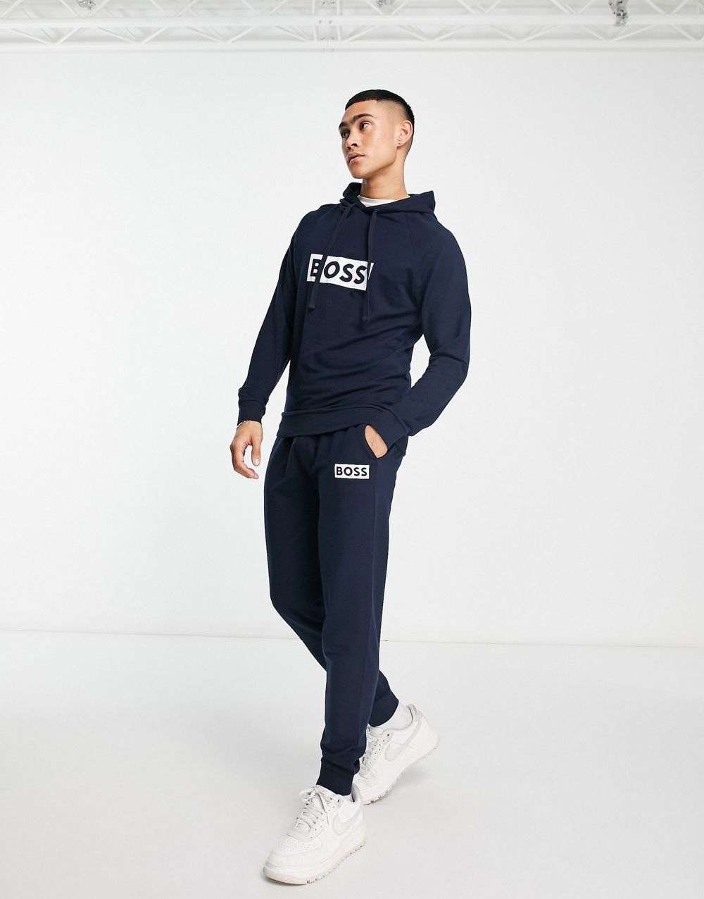 - BOSS Bodywear logo lounge hoodie in navy