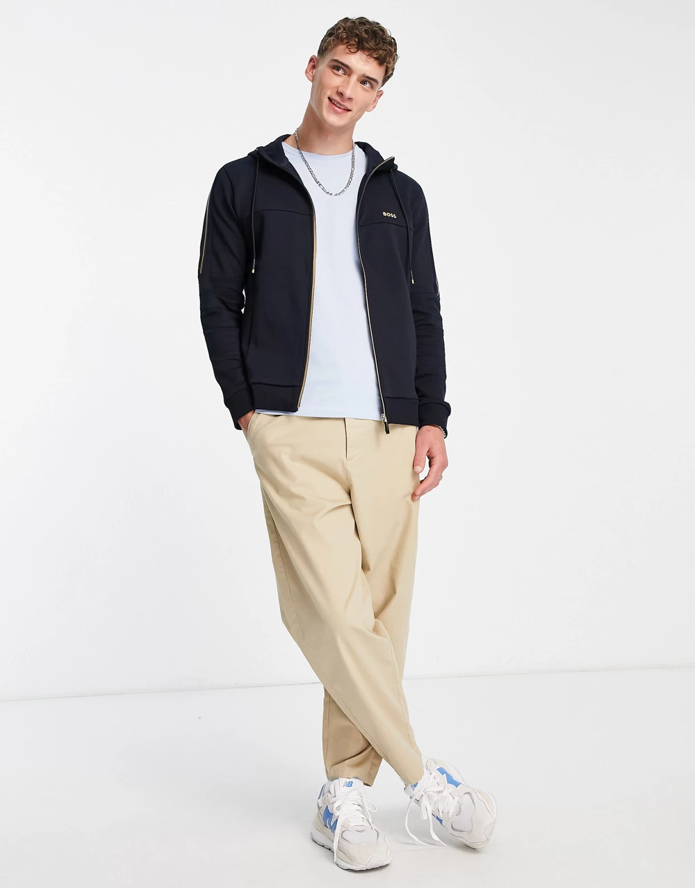- BOSS Green Saggy zip through hoodie in navy