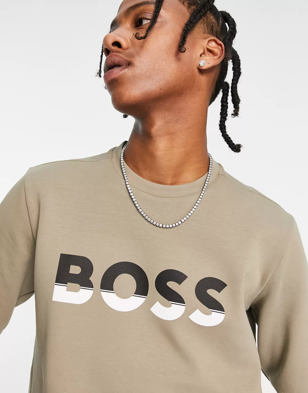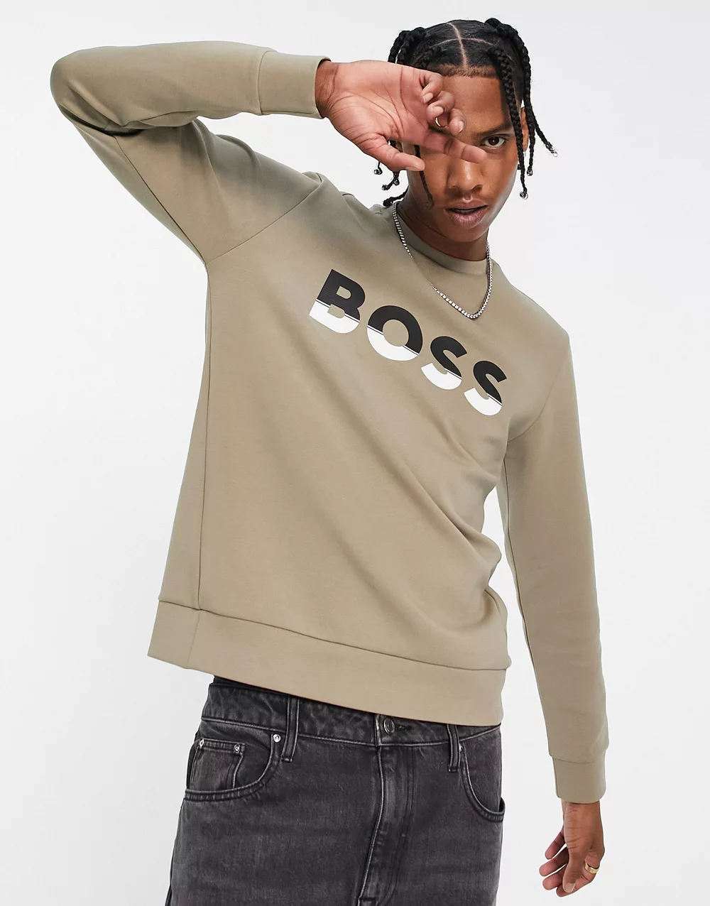 - BOSS Green Salbo 1 large logo sweatshirt in beige