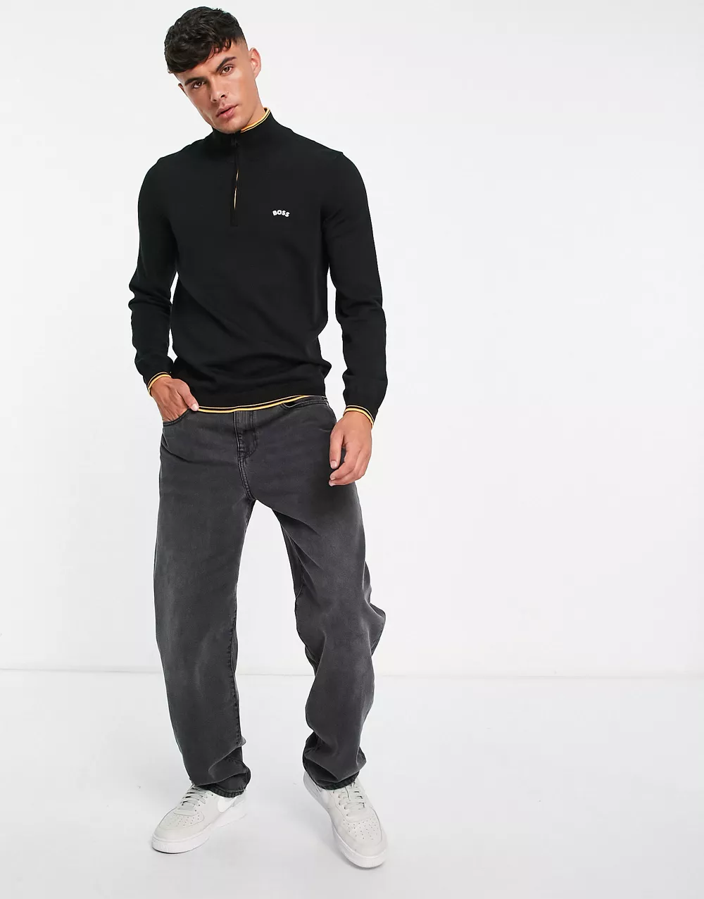 - BOSS Green Zitom_W22 1/4 zip jumper in black