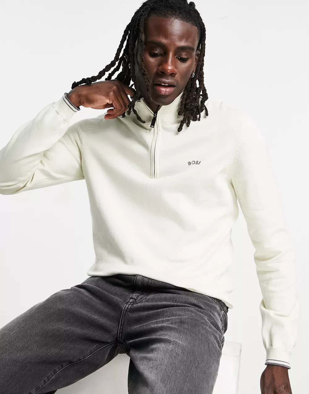 BOSS Green Zitom_W22 1/4 zip jumper in black