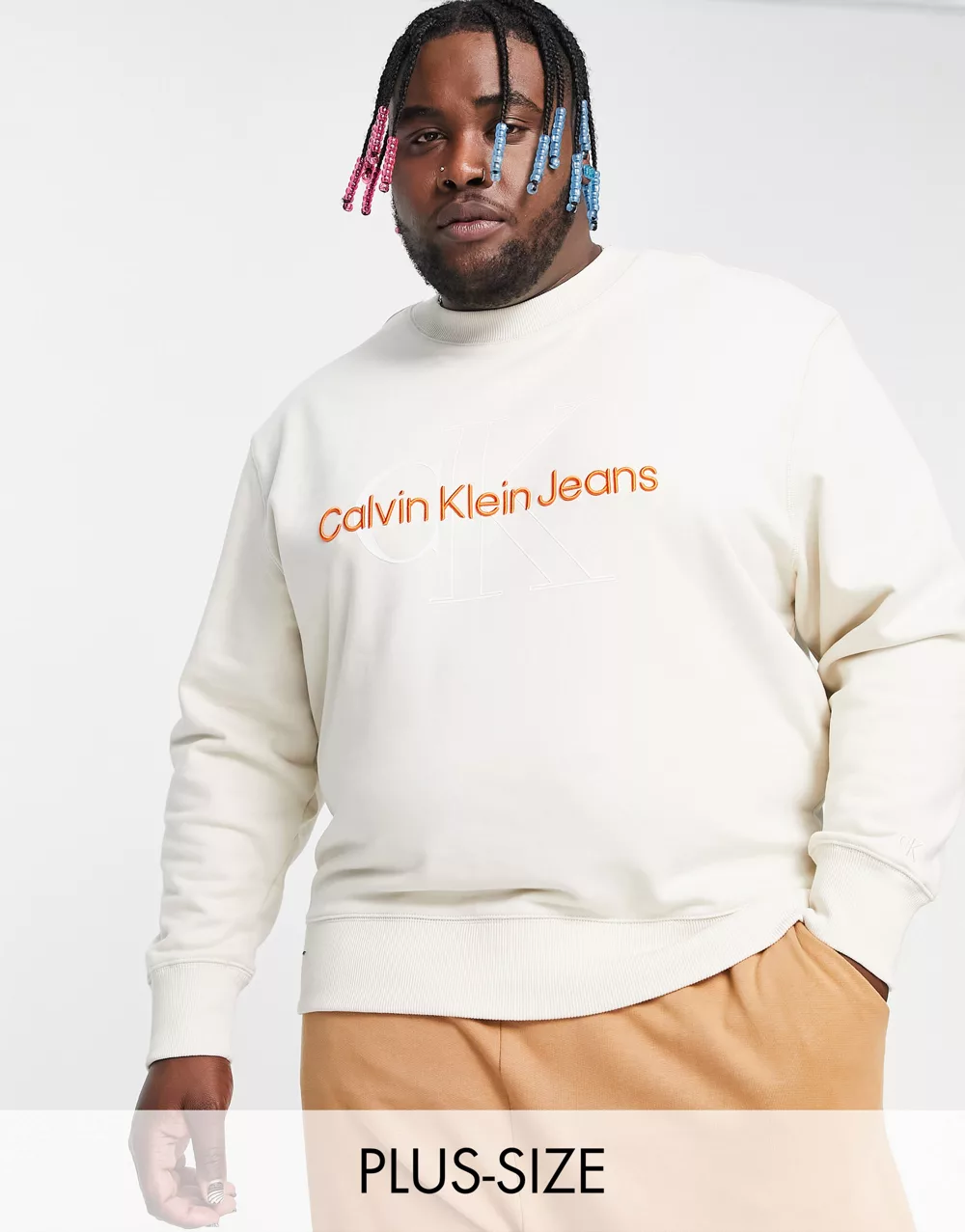 - Calvin Klein Jeans Big & Tall two tone monogram sweatshirt relaxed fit in stone
