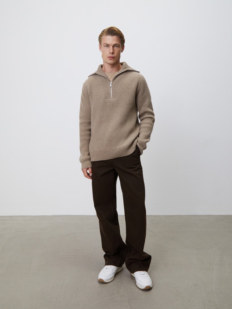 Объемный джемпер из кашемира и шерсти. Мягкий тяжелый трикотаж — уютное дополнение вашего осенне-зимнего гардероба. Для этого джемпера мы выбрали нежный кашемир и смягченную шерсть, а чтобы сделать его плотным и теплым, связали джемпер в четыре нити. Рельефное переплетение оставляет нить воздушной, поэтому при частом трении о шершавые поверхности на джемпере могут появляться катышки — вы без труда удалите их дома.