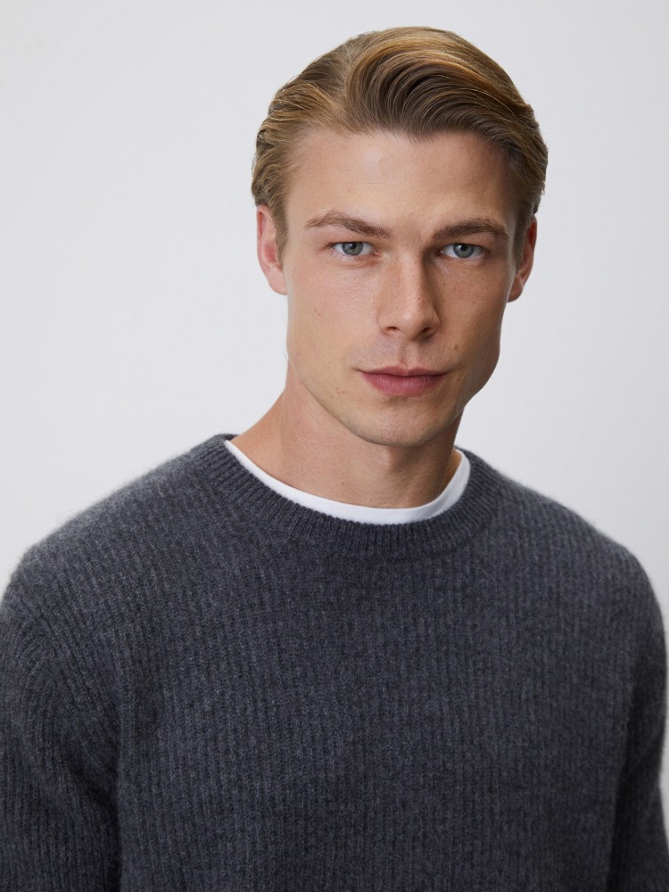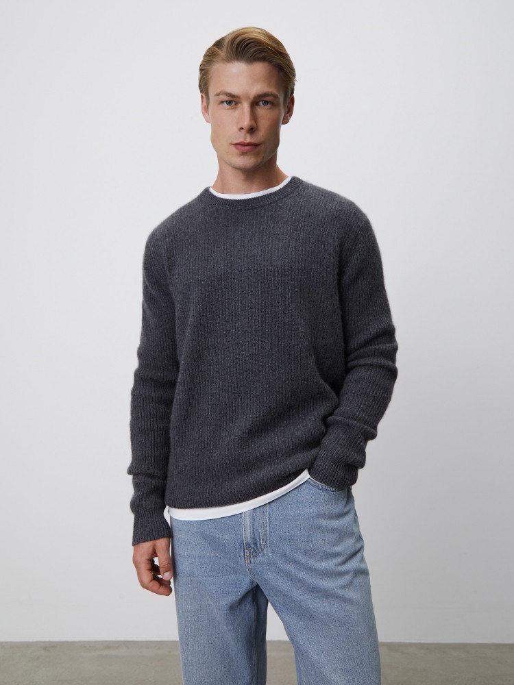 Джемпер из кашемира. Лаконичный джемпер, который подходит к любым брюкам, от джоггеров и джинсов до классики — такие модели никогда не устаревают. Связан из 100% кашемира — нежной и теплой нити, созданной из невесомого пуха кашмирских коз. Природная пушистость нити может приводить к появлению катышков — избегайте трения о шершавые поверхности и время от времени удаляйте комочки пуха машинкой по уходу за шерстью.