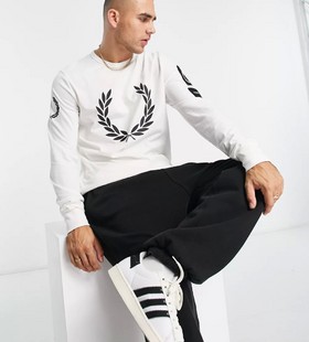 - Fred Perry laurel wreath and badge long sleeve top in white