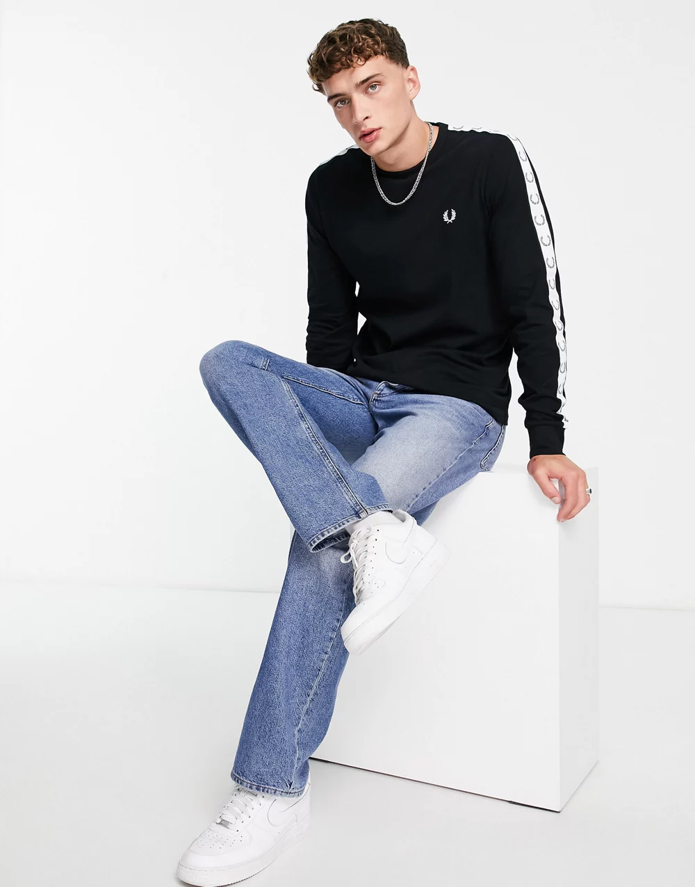 - Fred Perry taped long sleeve top in black
