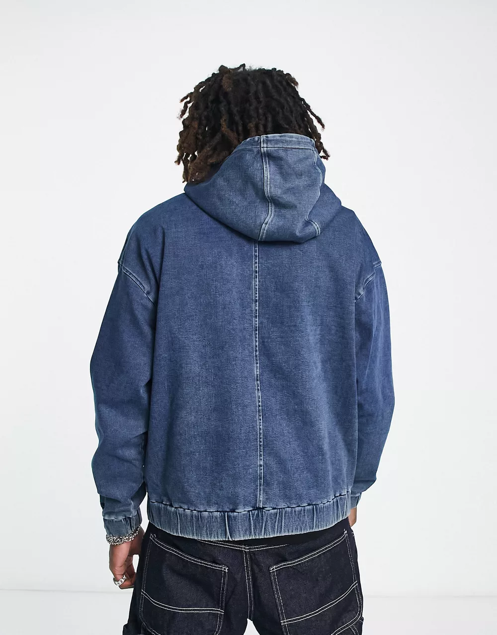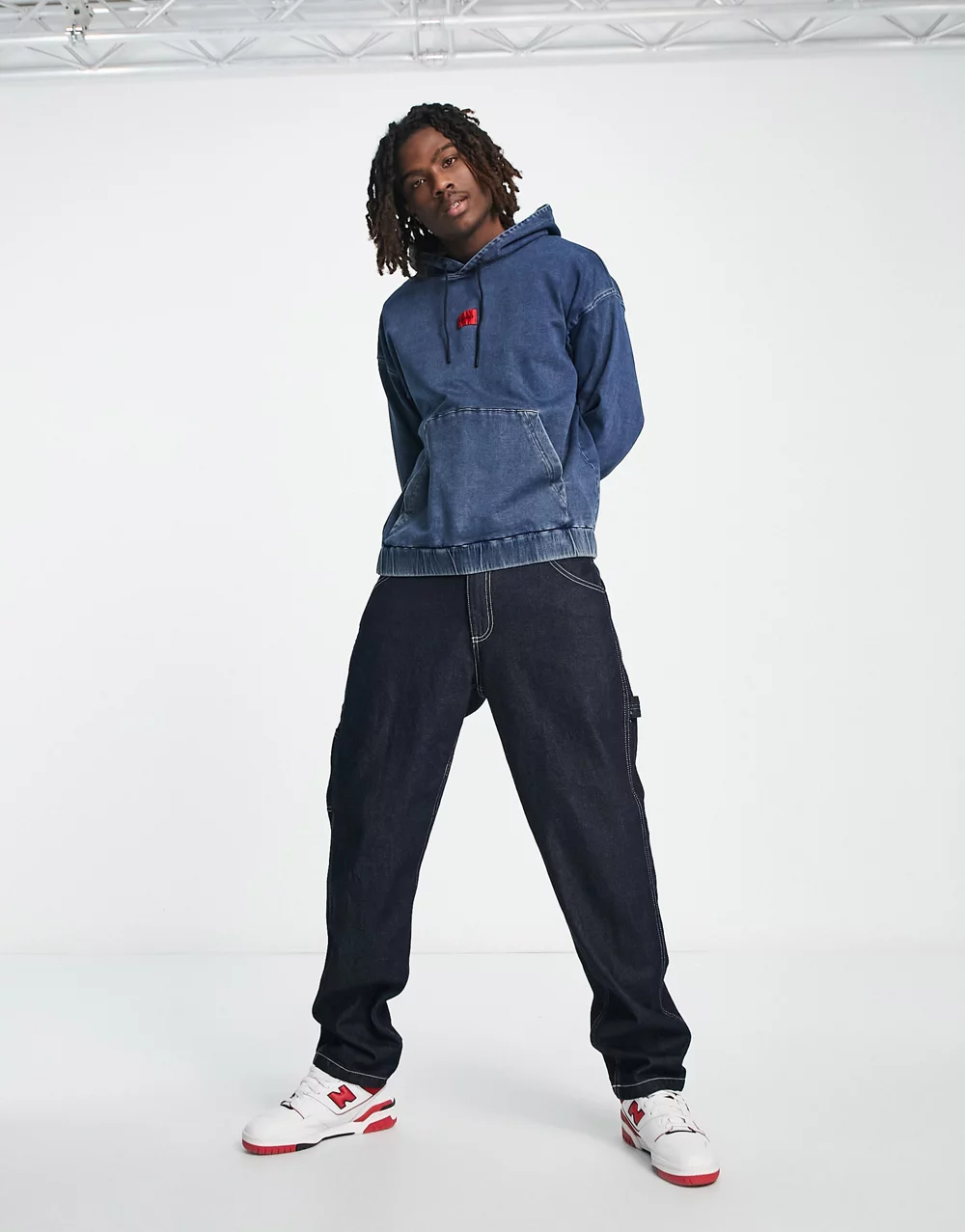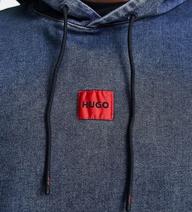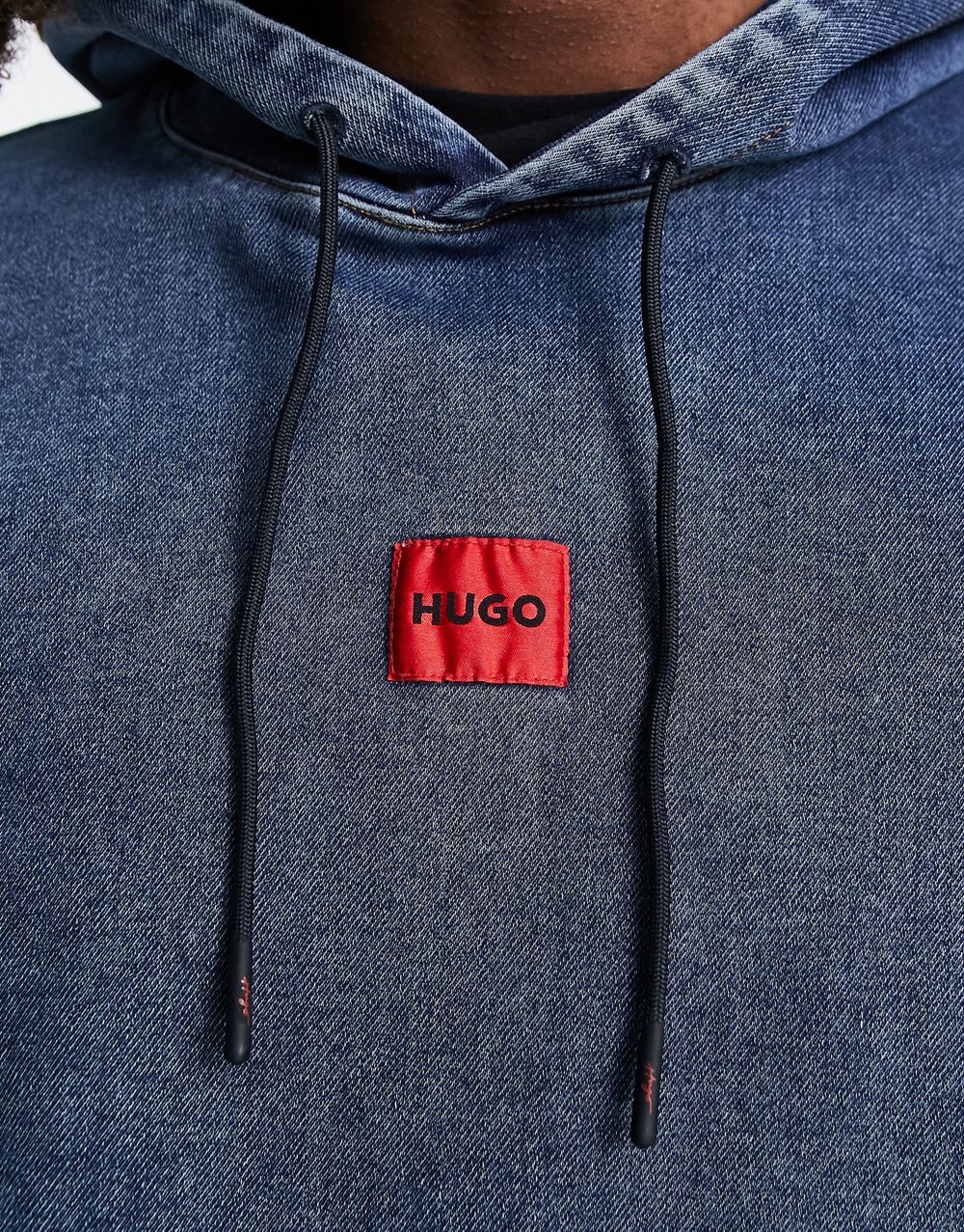 - HUGO 020 relaxed fit denim hoodie in medium blue