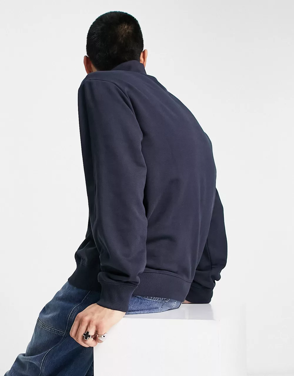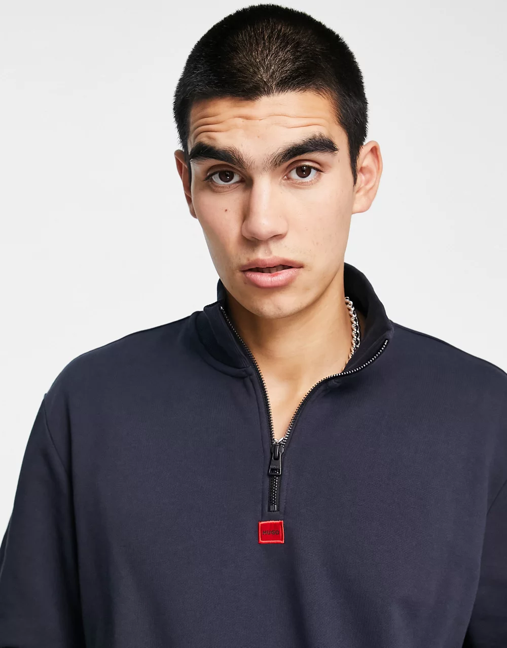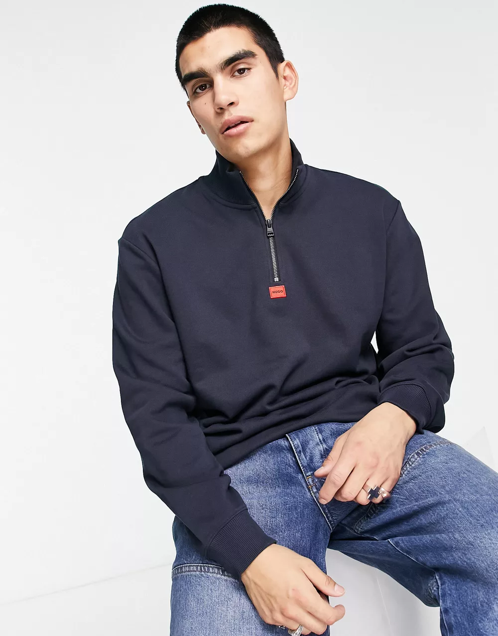 - HUGO Durty relaxed fit 1/4 zip sweatshirt in navy